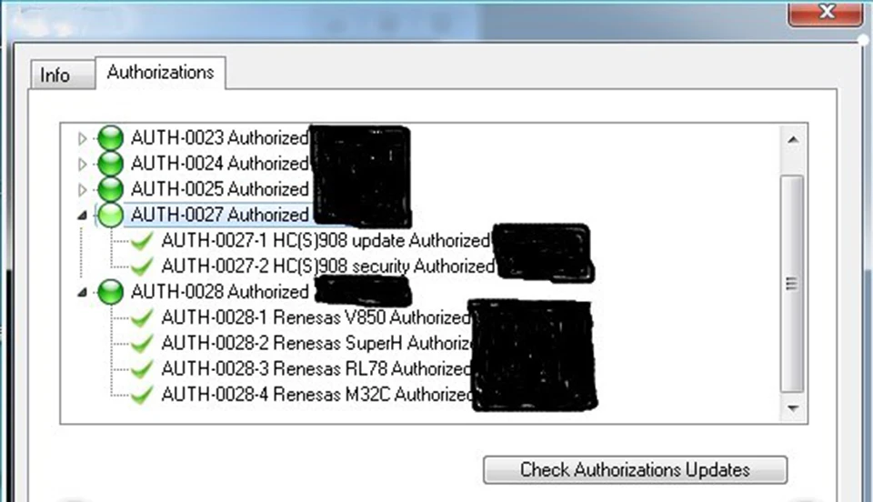 3. Добавить новое разрешение: AUTH-0028-1 авторизованный Renesas V850 и AUTH-0028-2 Renesas SuperH авторизованный 2017/10/9