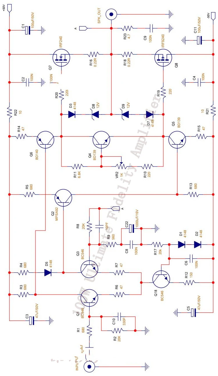 100W Ultimate Fidelity усилитель-это очень известный усилитель высокой точности 100W, управляемый MOS tubes на иностранном дийаудио-forum. Выбранные детали просты, просты в изготовлении, и звук достигает очень высокого уровня. Это стоит делать фанатами.