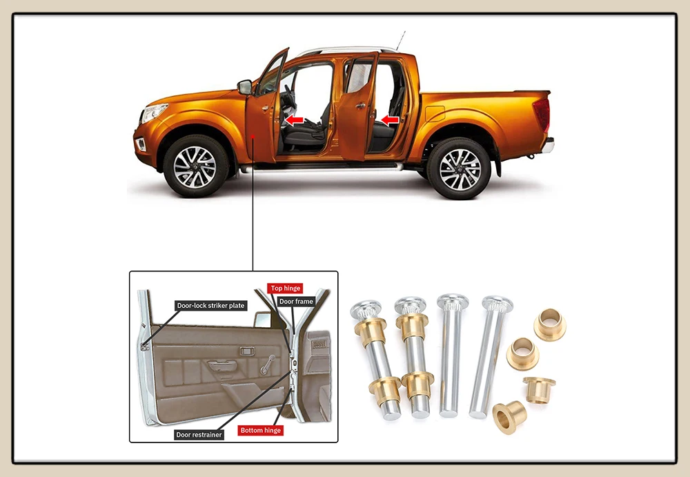 Набор для ремонта дверных петель, 4 шт., набор для втулки дверных петель для 97-05 Nissan Navara D22 Frontier Truck Pickup, высокопрочный, устойчивый к коррозии CAB23
