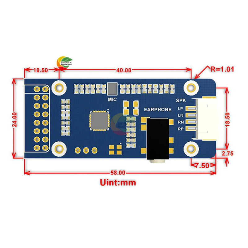 Этот низкомощный аудио модуль основан на WM8960, поддерживает стерео кодирование/декодирование, поддерживает звукозапись, более того, он может непосредственно управлять динамиками для воспроизведения музыки.