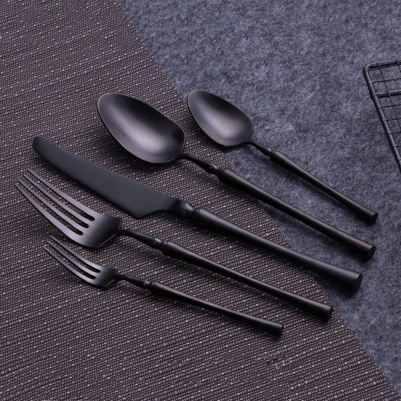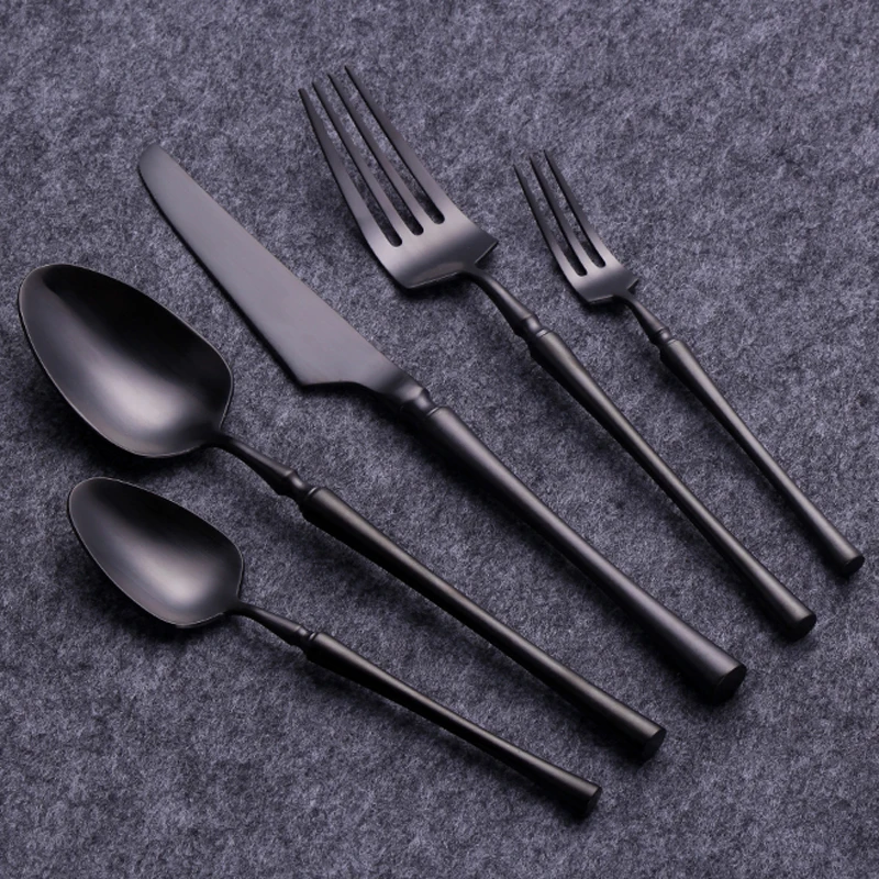 Высокое качество черный набор посуды комплект столовых приборов для ресторана нож вилка чайная ложка 304 нержавеющая сталь кухонная утварь набор посуды
