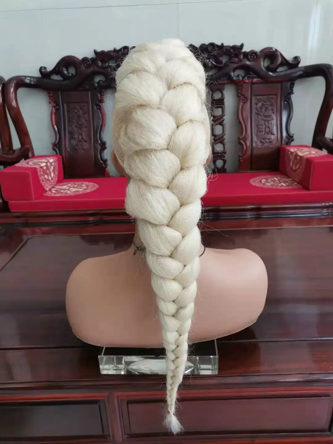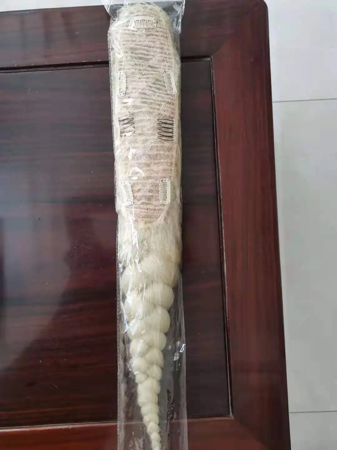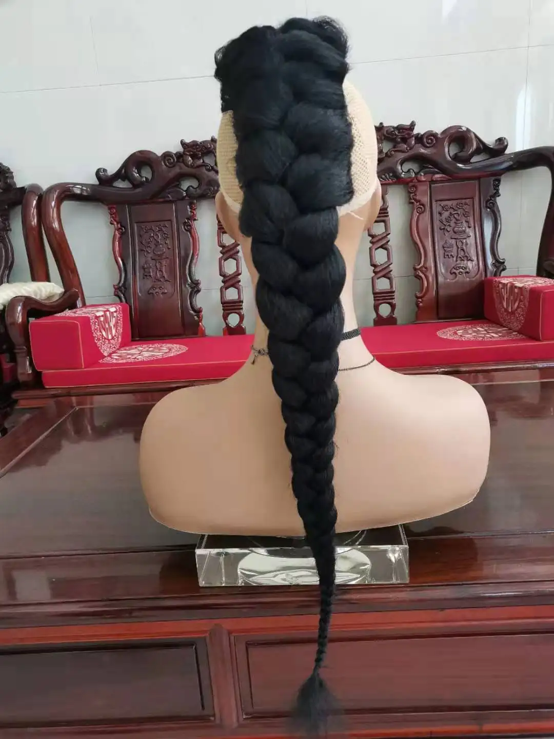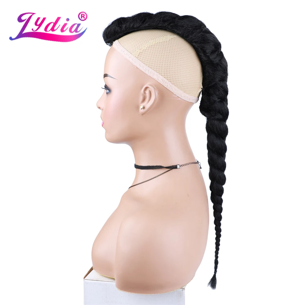 Lydia 30Inch Synthetic High Puff Afro Kinky Straight Middle-Part Wig Natural Black Clips In Jumbo Braid Hairpiece Ponytail 76cm