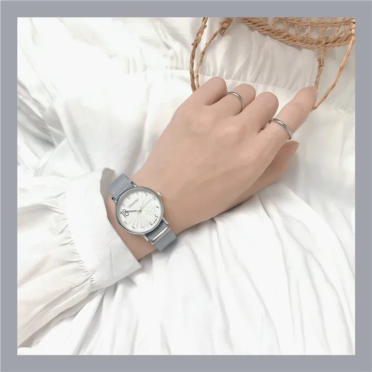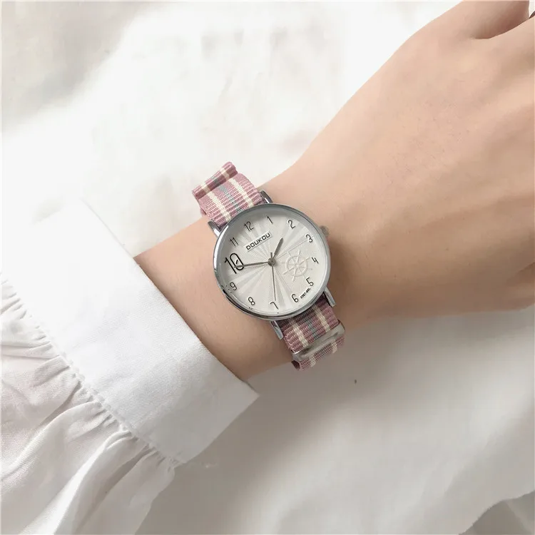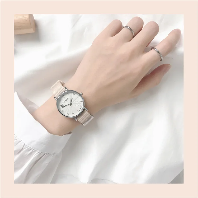 Fashion Stripe Women Watches Simple Number Gear Dial Design Ladies Quartz Wristwatches Casual Pink Nylon Strap Woman Watch Hours