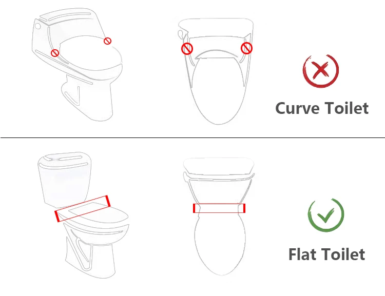 Туалет с изогнутыми краями может не подойти, если вы не уверены, подходит ли ваш туалет, пожалуйста, отправьте фотографию туалета на продажу, который всегда онлайн для поддержки :)