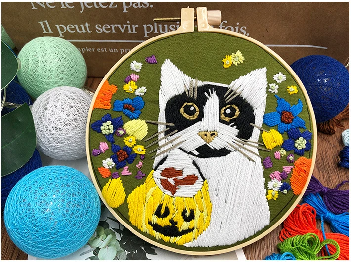 Cute Animals Pattern DIY Embroidery Set for Beginner Flowers Needlework Tools Set Fabric Round Sewing Craft Kit Wall Painting