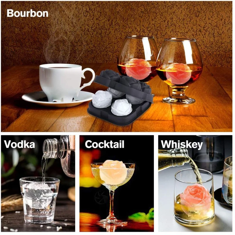 4 отверстия Роза Форма кубика льда подносы кубика льда силикона делает четыре 2,3 дюймов Роза в форме кубиков льда многоразовые виски коктейль пресс-форм Барные инструменты