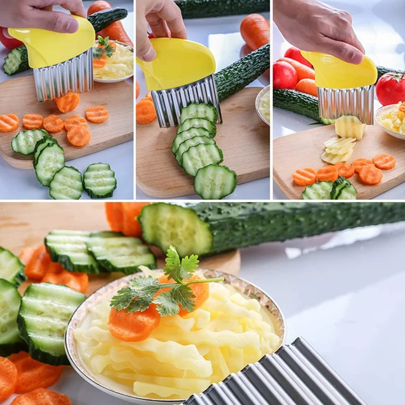 1. Идеально подходит для ломтиков: прост в использовании, легко вырезает волнистую форму и увеличивает семейную радость и аппетит. Отлично подходит для резки различных фруктов и овощей, особенно картофеля, идеальный кухонный помощник.