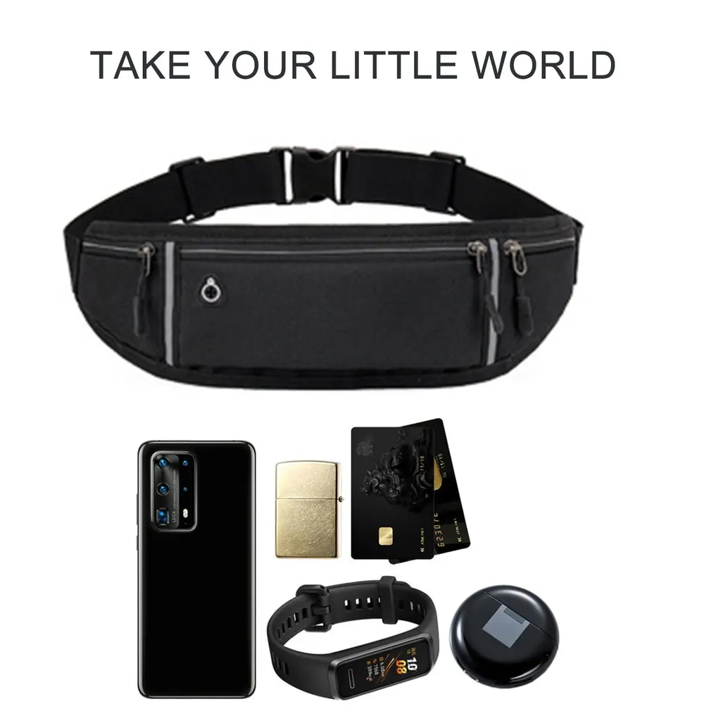 1. Дизайн многоугольного внешнего вида: тонкая спортивная поясная сумка, модный спортивный стиль, оснащен удобными тремя карманами на молнии, отверстием для наушников + светоотражающей полосой.