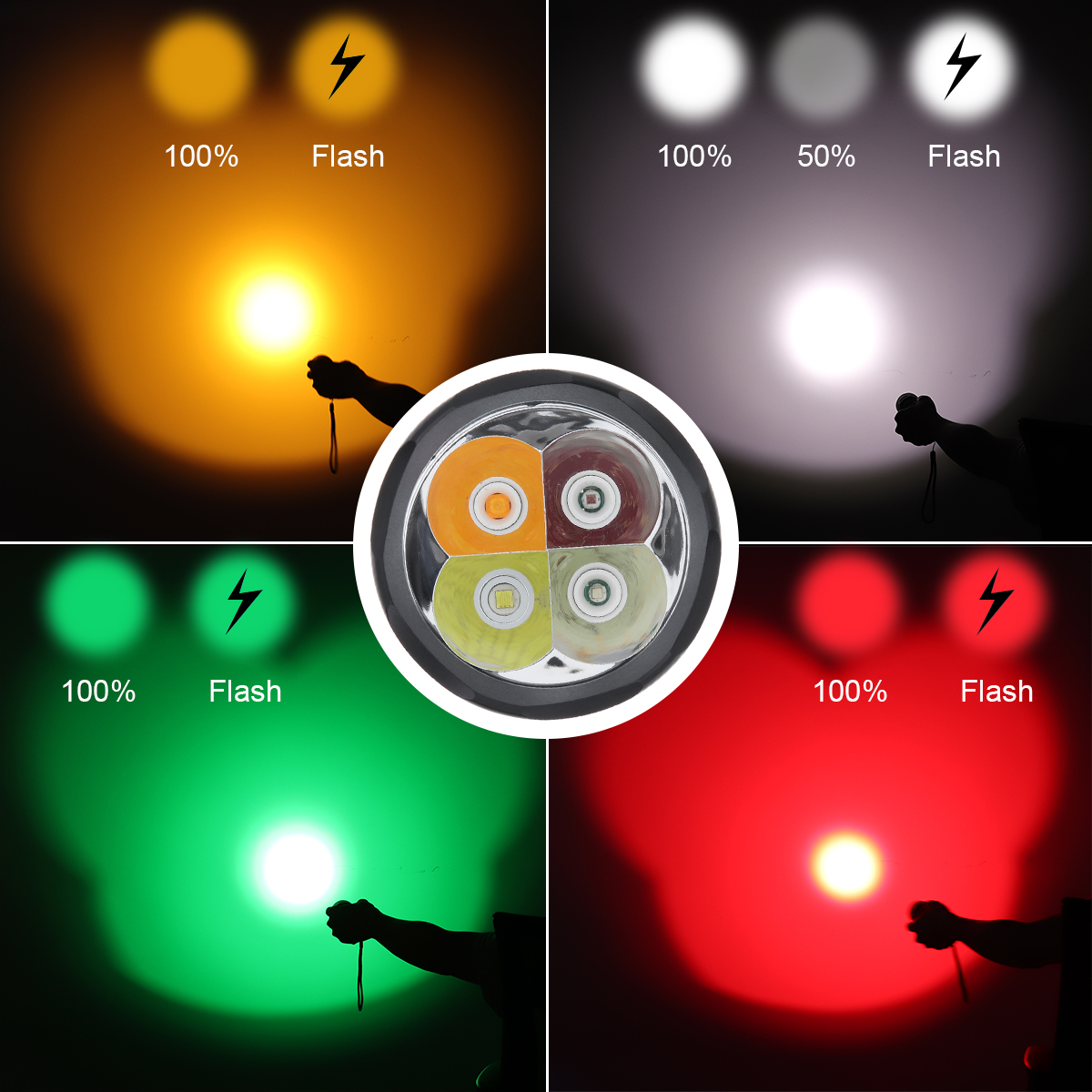 -4 в 1 цветные вспышки светильник имеет 4 индивидуальных светодиодный светильник источник (белый/красный/зеленый/желтый), каждый светильник источник имеется отдельный переключатель и по крайней мере 2 светильник ing режимов, иногда вам не нужно переворачивать все цвета