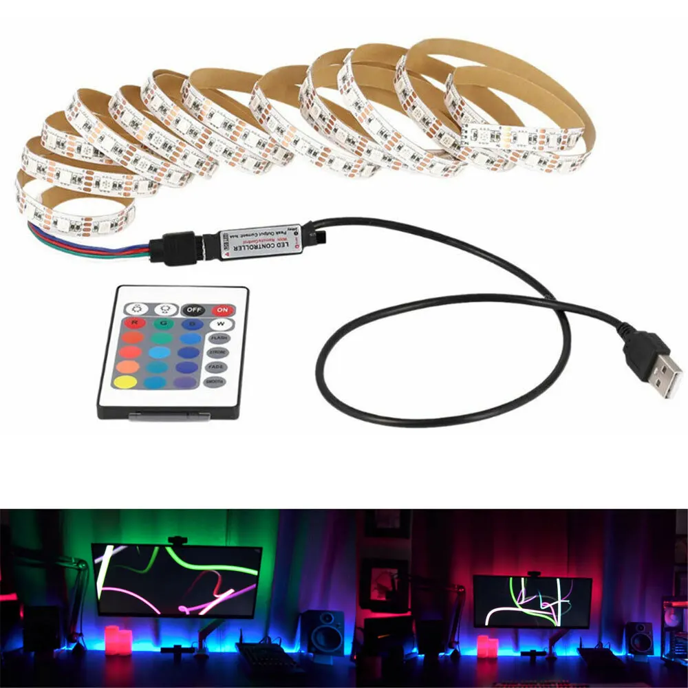 1 м 2 м 3 м 4 м 5 М 5050 SMD RGB 60 светодиодный/М лента лампа DC 5 В светодиодный светильник RGB ТВ задний светильник ing Kit + ИК-пульт дистанционного управления