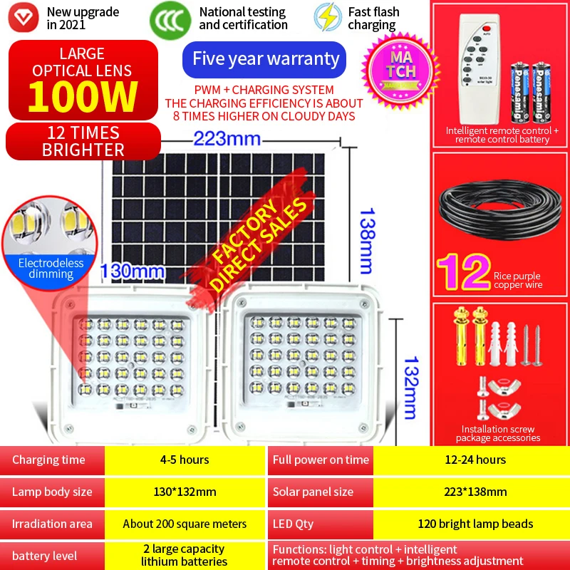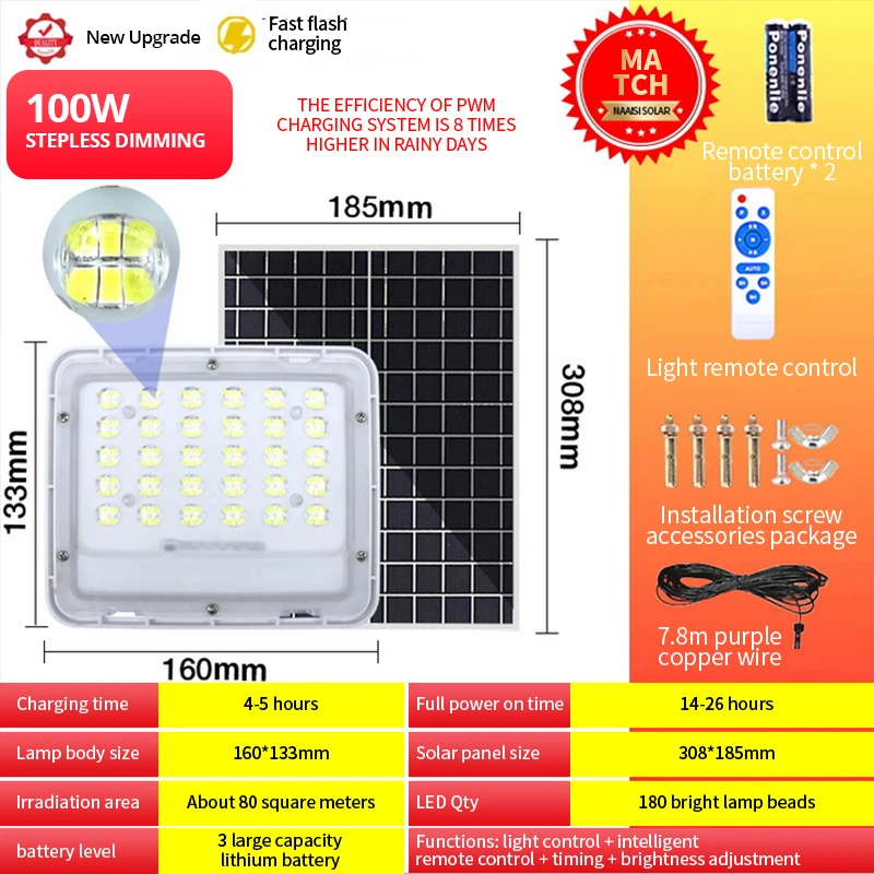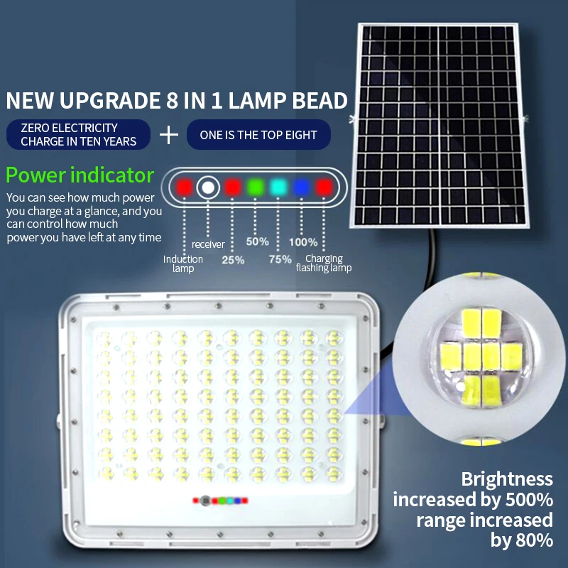 На солнечной светильник s Крытый Outdoor】outdoor солнечный светильник, солнечные панели и светильник тела предназначены отдельно. Солнечный светильник может быть полностью заряжен батареей 4000 мАч в течение 10 часов, светильник работает до 12 часов, быстро и абсолютно поглощает солнечную энергию. Солнечная панель со встроенными литиевыми батареями 4000 мАч, высокая яркость 360led, энергосбережение. Солнечная панель заряжается в дневное время и автоматически светится в темноте.