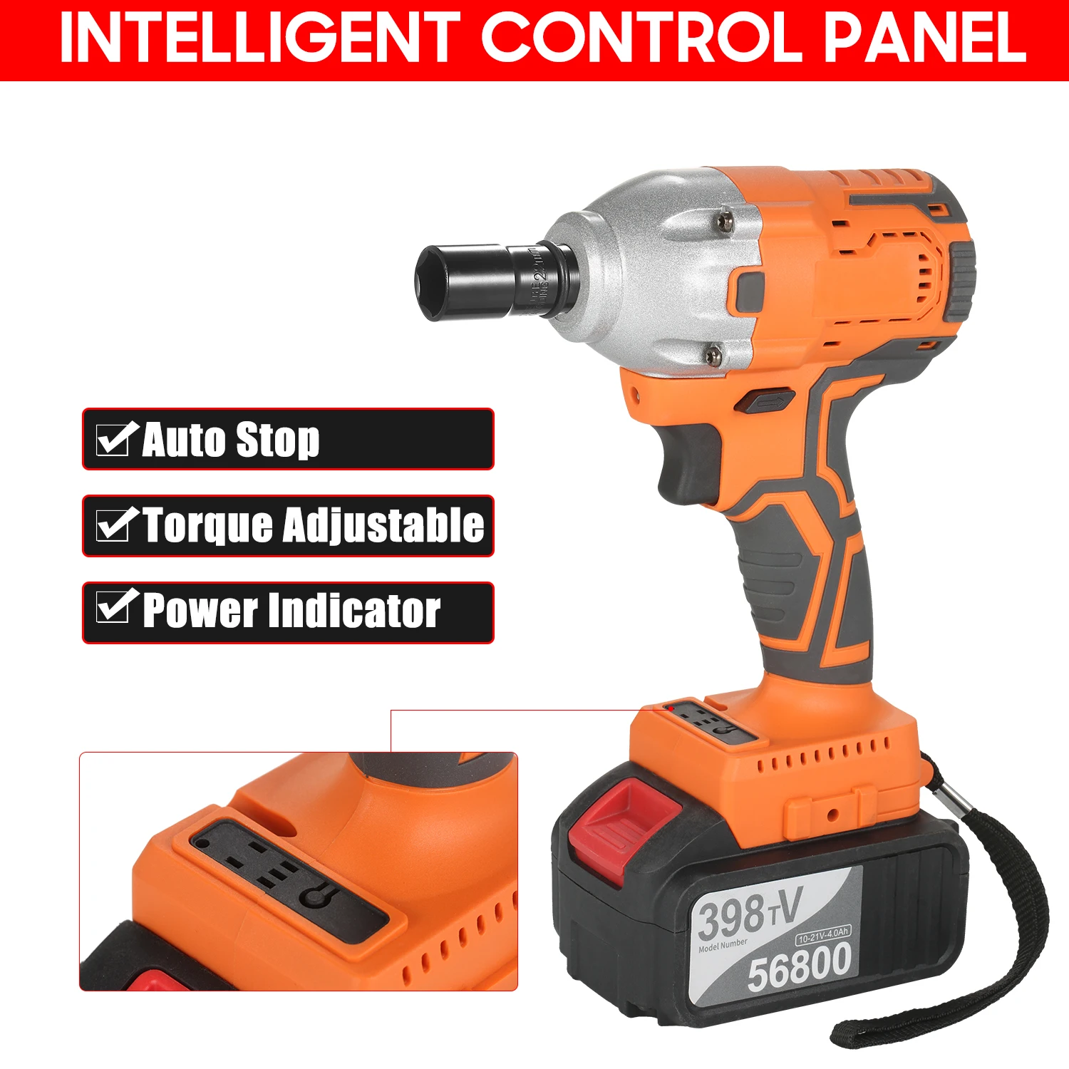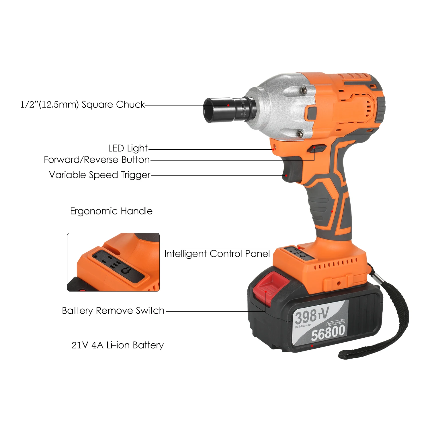 Аккумулятор большой емкости:Литий-ионный аккумулятор высокой емкости 21 В, С сверхбыстрой зарядкой, занимает всего несколько часов для полной зарядки и позволяет гаечному ключом непрерывно работать в течение длительного времени.