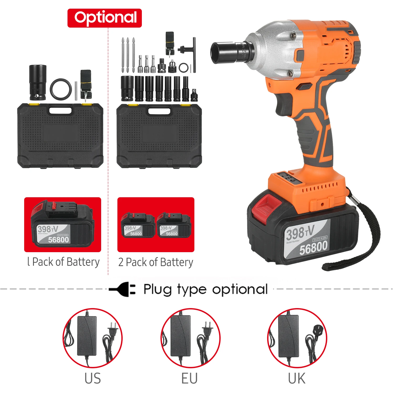 Только набор ударных гаечных ключей, другие аксессуары на фотографиях не включены.