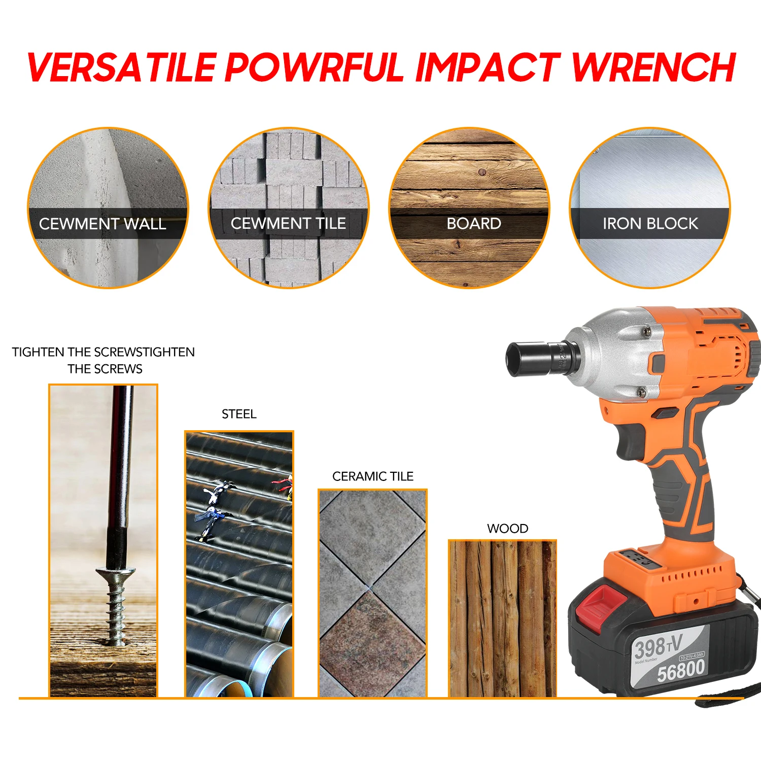 Универсальный ударный драйвер, тщательно спроектированный, сочетает в себе Особенности электрической отвертки, ударного ключа и ударного аккумуляторного дрели, быстро рассеивает тепло, работает хорошо, стабильно, эффективно, безопасно, широко применяется в домашнем ремонте, строительные проекты, ремонт мотоциклов и т. Д.