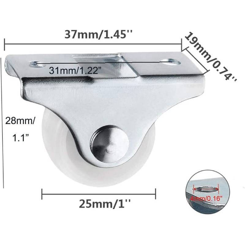 4 шт. 1 дюймовые малые самоориентирующиеся колеса, не поворотные ролики с металлической верхней пластиной, не вращающиеся ролики, жесткие пластиковые колеса для мебели