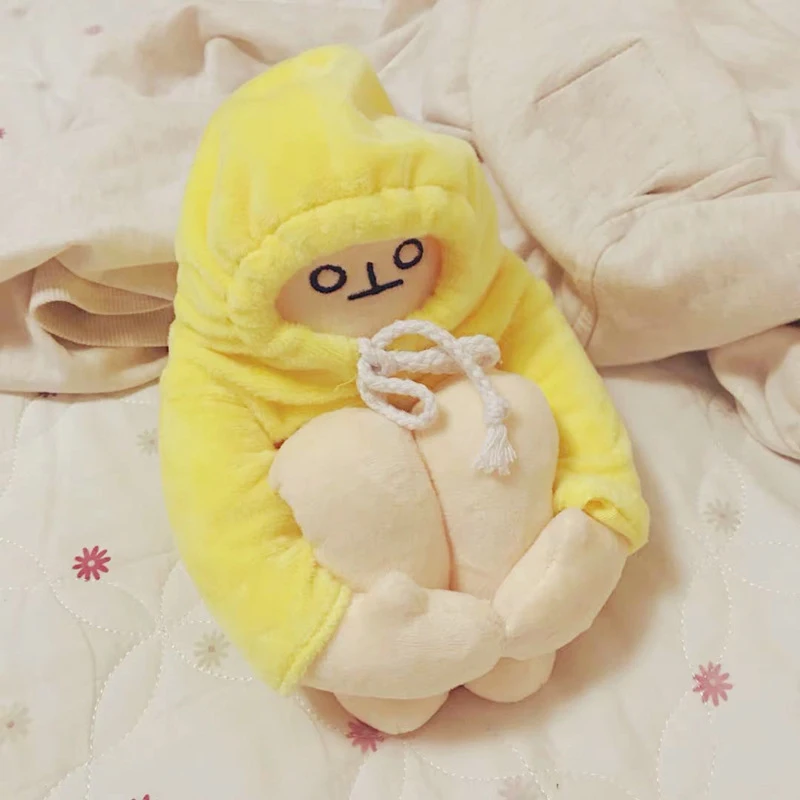 Кукла «банан» имеет магнитную застежку на ладони. Его ладонь можно сосать на любом железном предмете, поэтому эта маленькая кукла может быть на коленях и лазить по железным столбам.