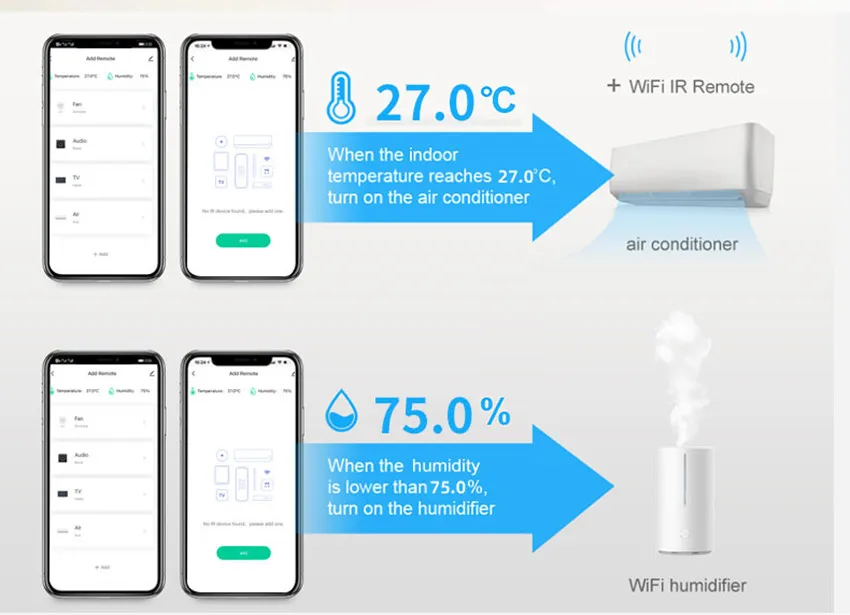 5. Сценарий и автоматизация в приложении: сценарий состоит из одного или нескольких действий. Создав «Сценарий», вы можете управлять сразу несколькими устройствами; Добавив «автоматизацию» и взаимодействуя с другими устройствами smart home, пульт Wi-Fi может выполнять действия автоматически на основе условий, такие как состояние устройств, погода и погода. 'Час.