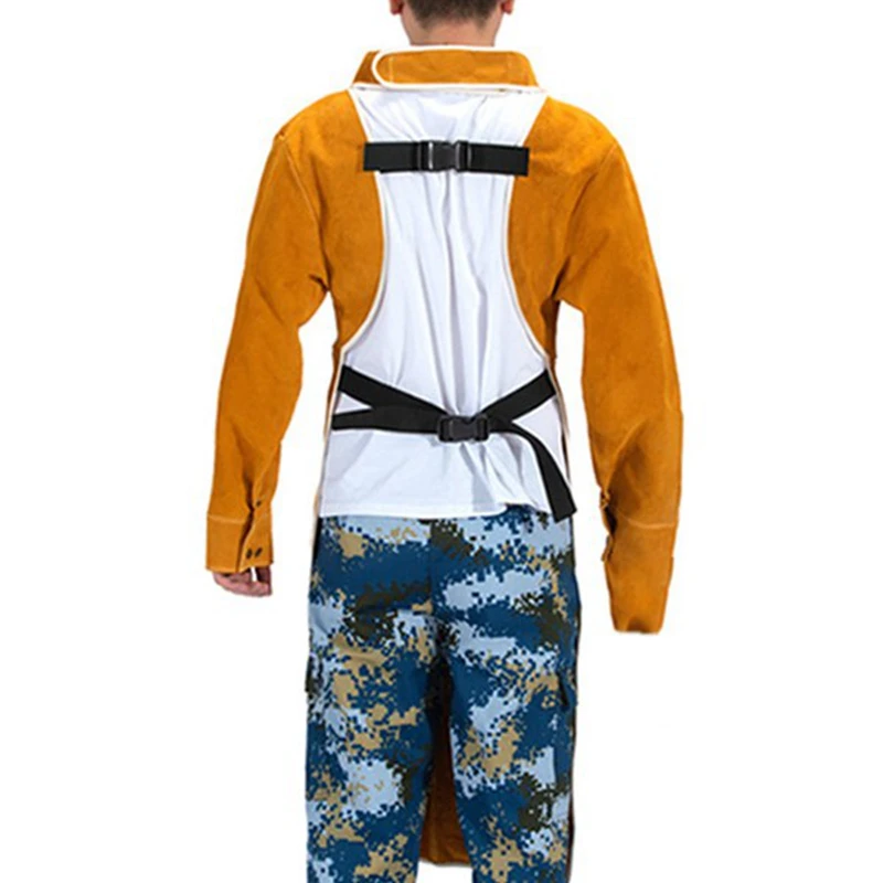 Promotion! 85CM Welding Apron with Sleeves, Leather Welder Apron, Cowhide Leather and Refractory Welding with Adjustable Size