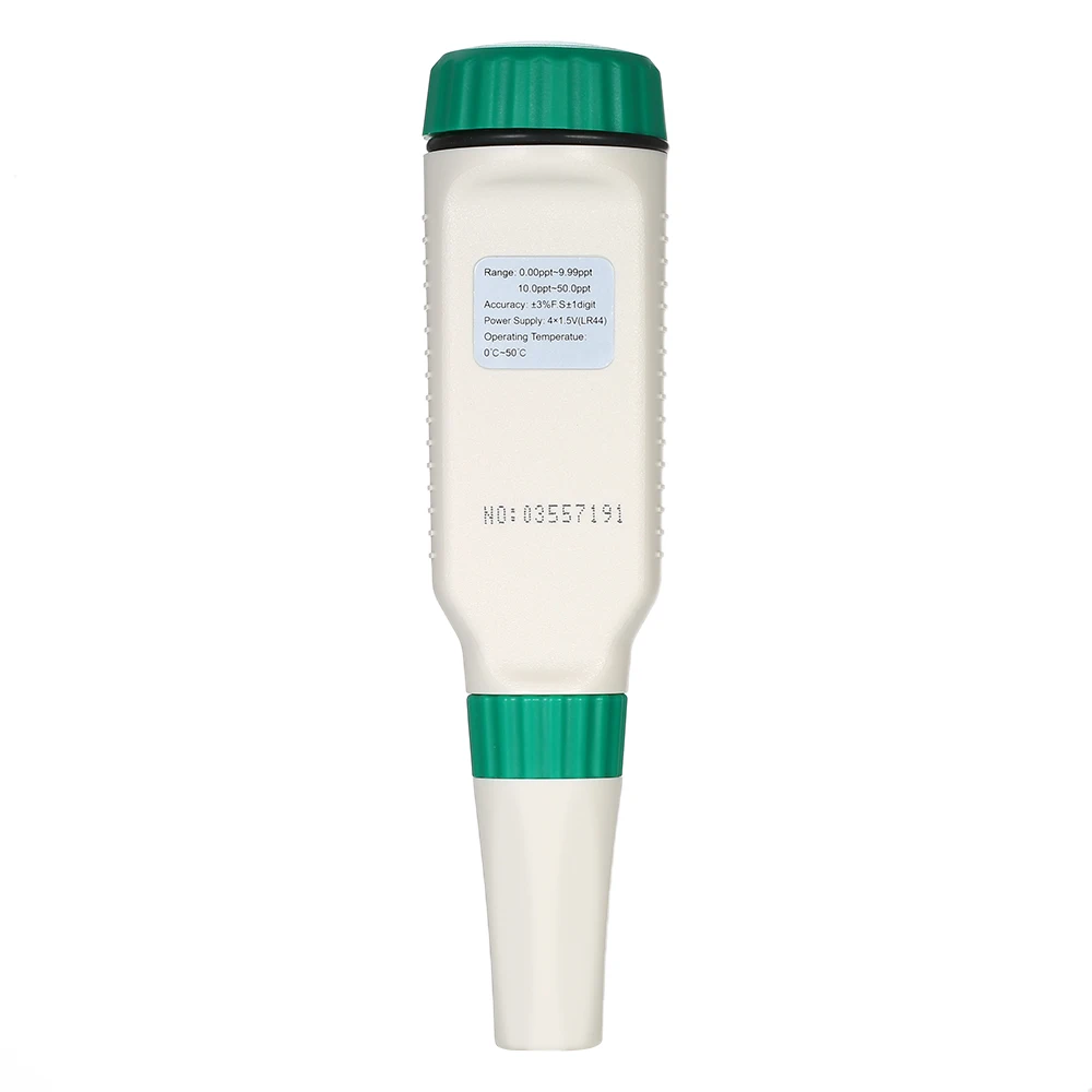 Портативный компактный дизайн: мини-измеритель солености ручки, просто питание от 4 шт. LR44 кнопочных аккумуляторов, долгосрочный режим ожидания, удобно для переноски и измерения в реальном времени в любое время в любом месте.