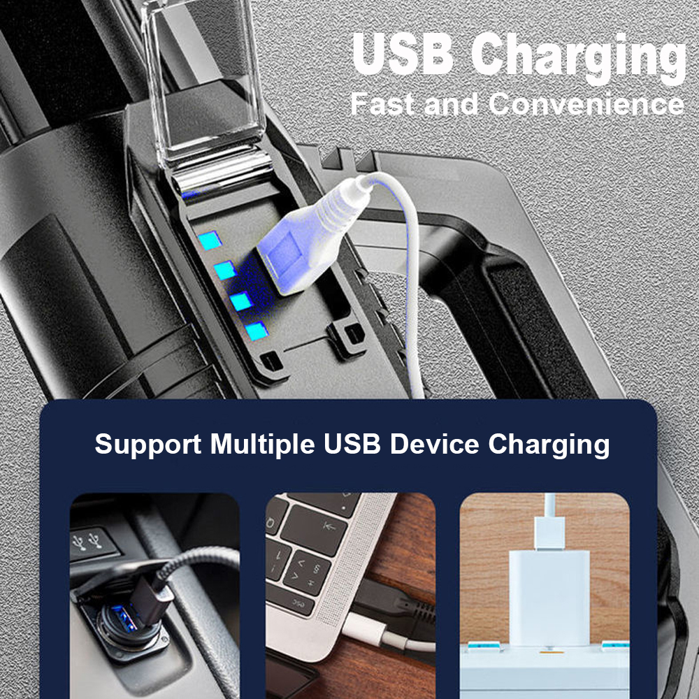 Многофункциональность: супер яркие фары, большое расстояние освещения и большое расстояние. Его можно использовать как поисковый светильник, Кемпинговый светильник, рабочий светильник и т. д.