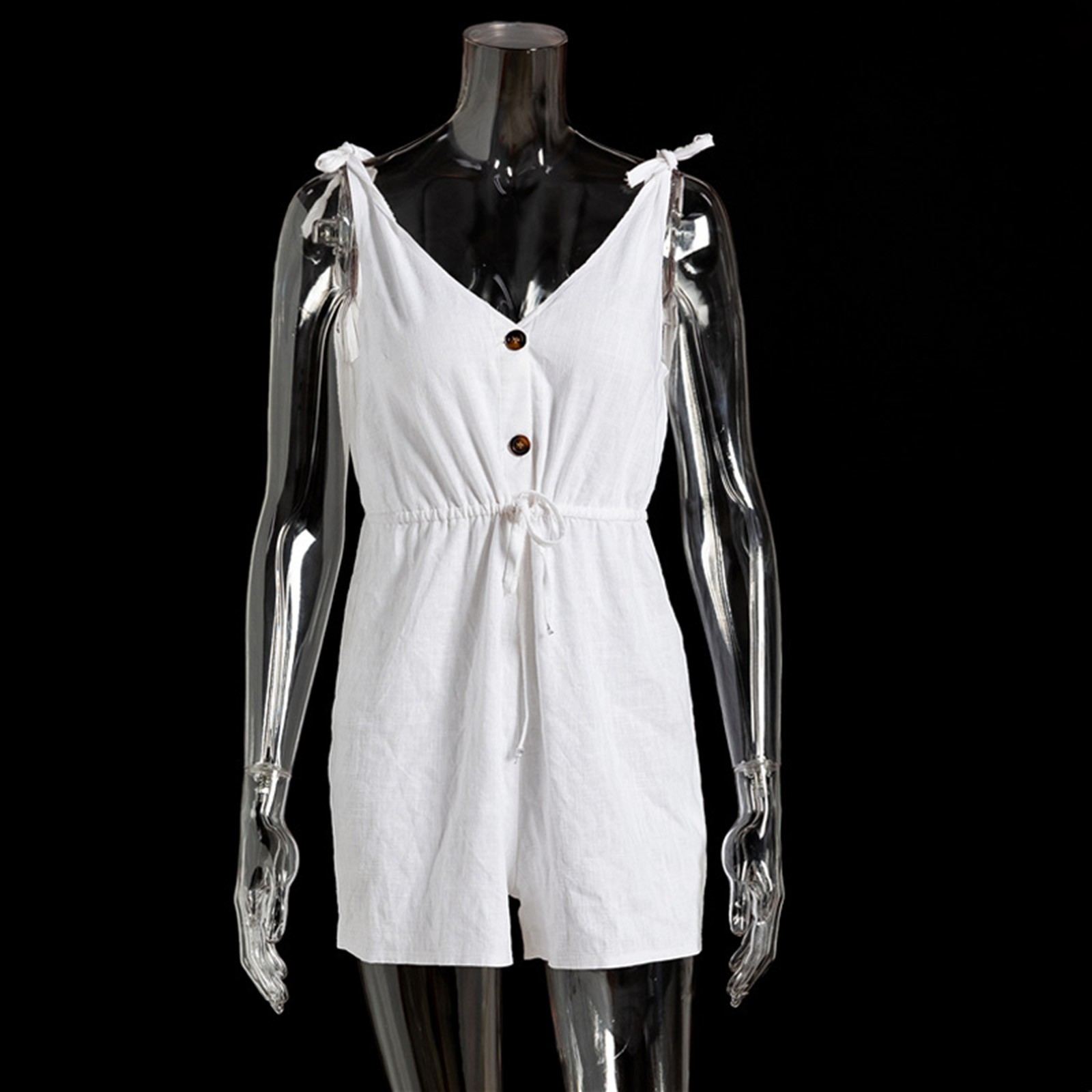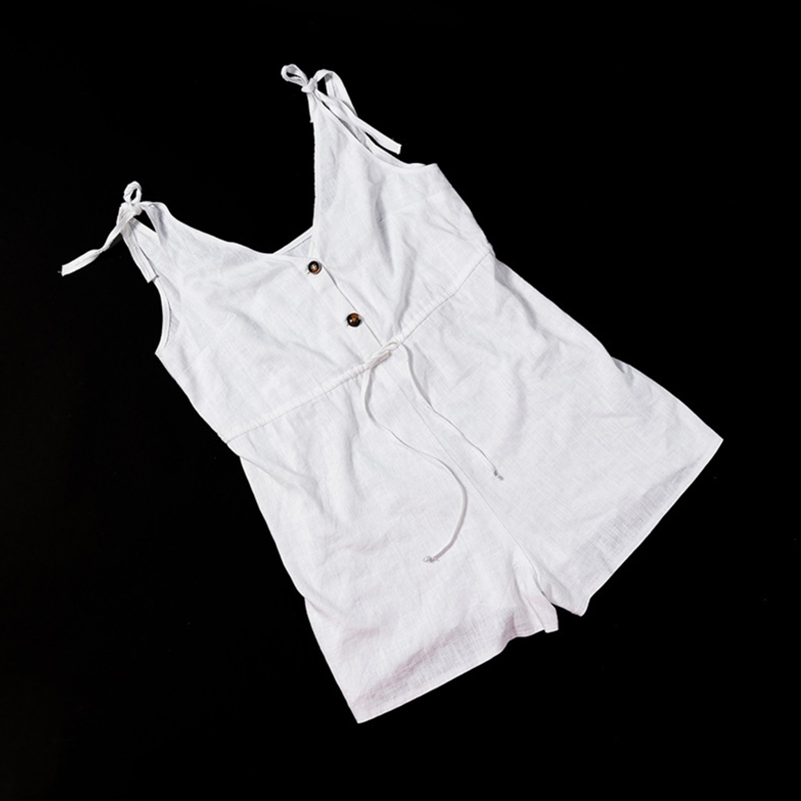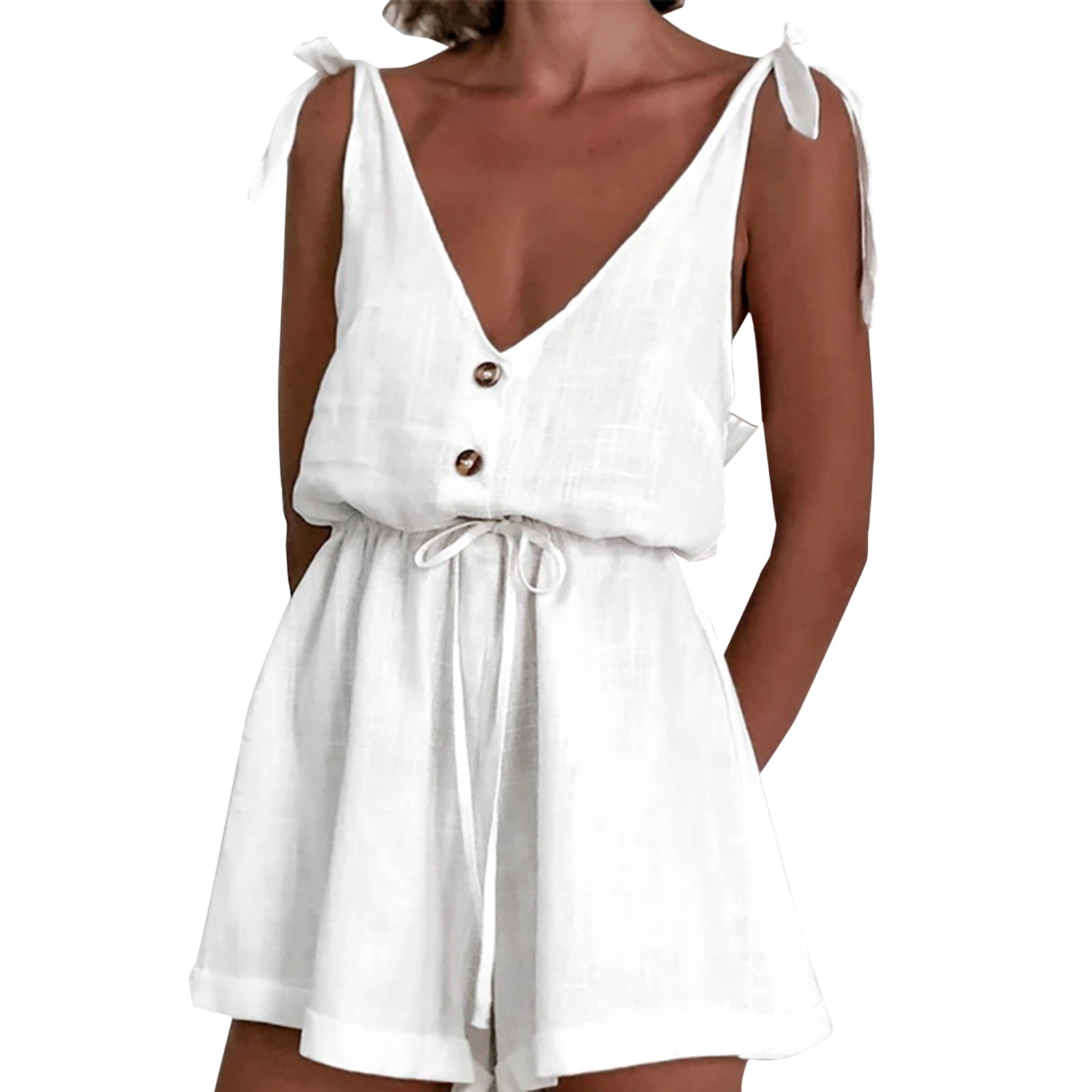 Womens Cotton linen V Neck Jumpsuit Sleeveless Button Front Tie Strap Romper