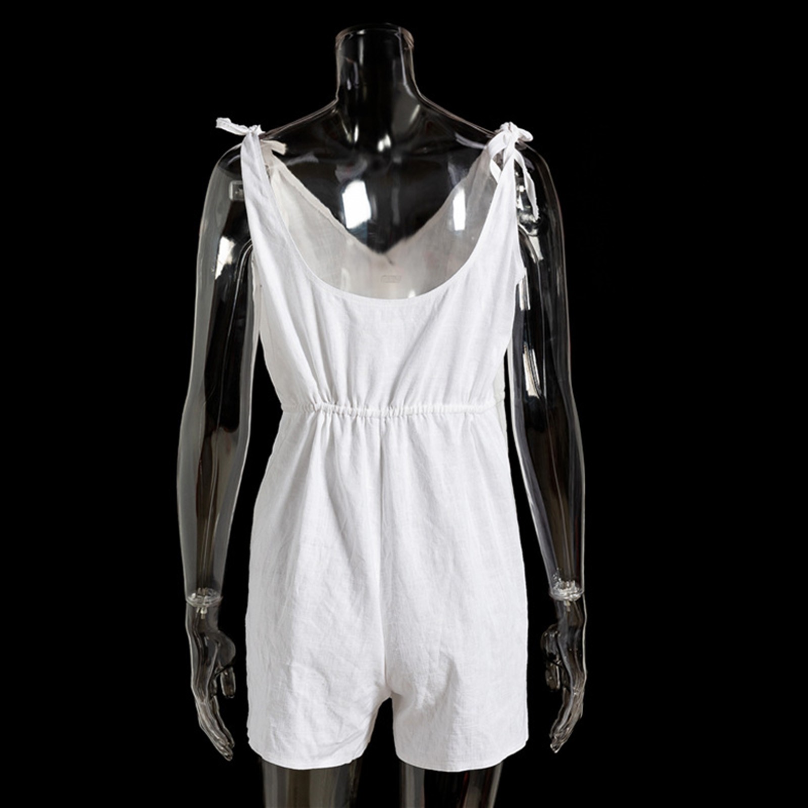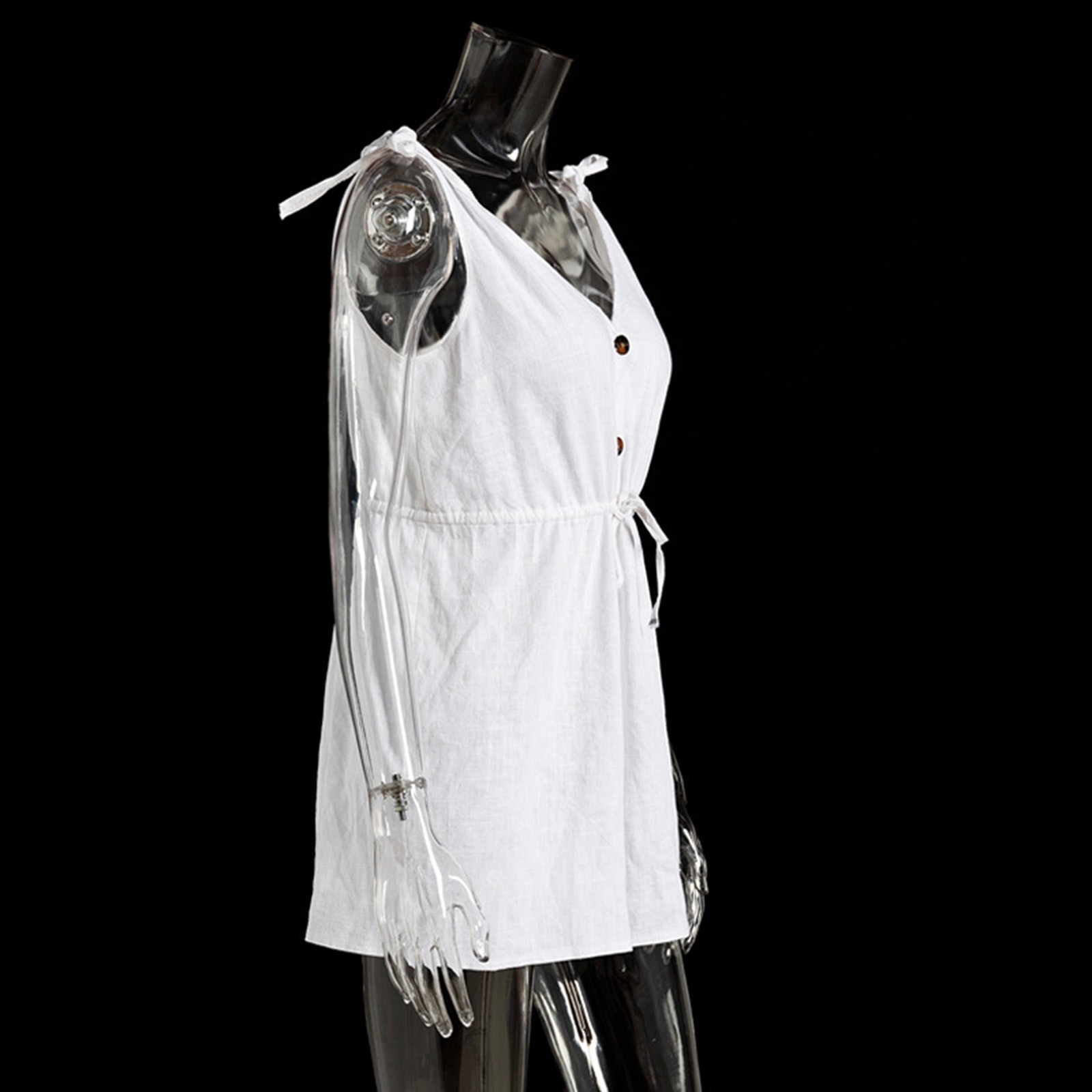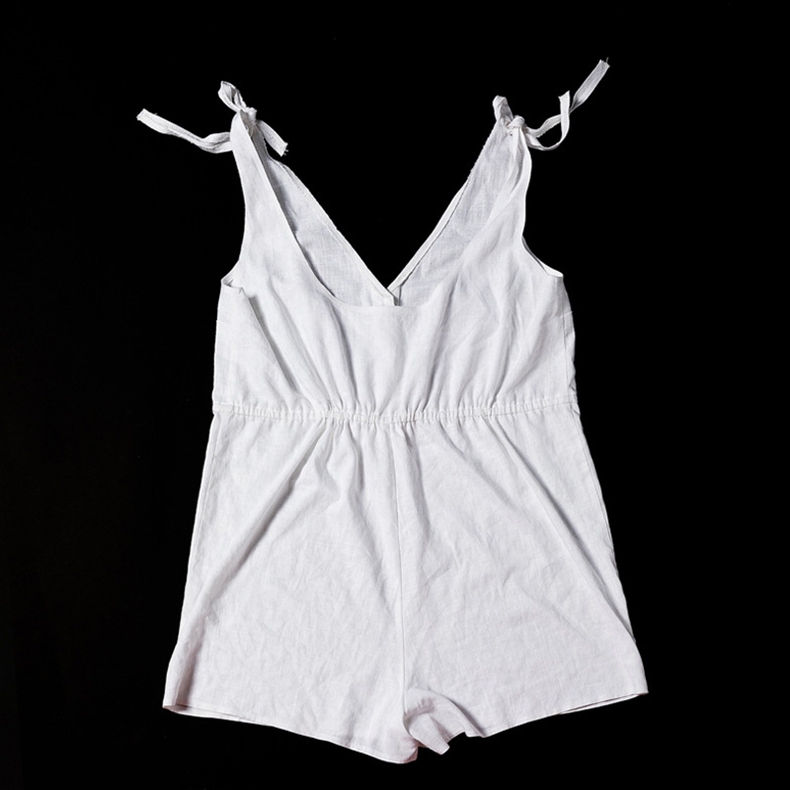 Womens Cotton linen V Neck Jumpsuit Sleeveless Button Front Tie Strap Romper