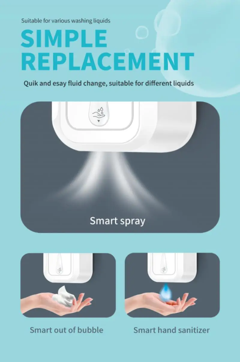 Характеристики: Удобный Настенный Автоматический Дозатор для жидкостей, подходит для различных моющих жидкостей, интеллектуального автоматического зондирования, спирта, наполненного моющим средством, Дезинфицирующей водой и т. д.