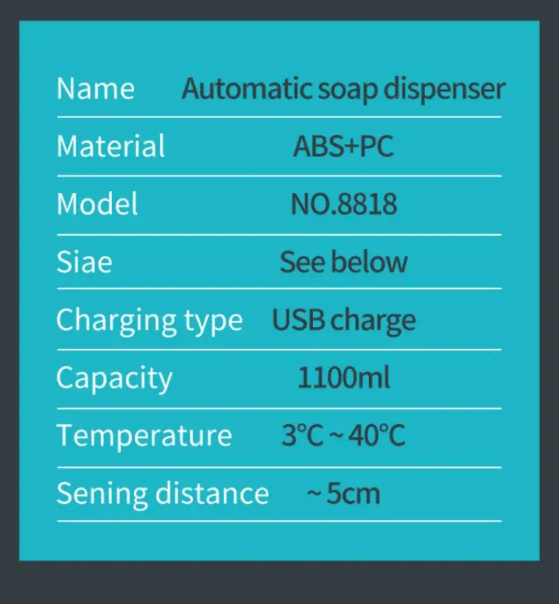 Название продукта: большой объем 1100 мл перезаряжаемый Интеллектуальный индукционный Бесконтактный дозатор мыла