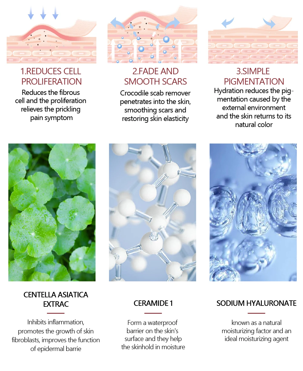 Средство для удаления крокодиловой парши проникает в кожу, разглаживая шрамы и восстанавливая эластичность кожи