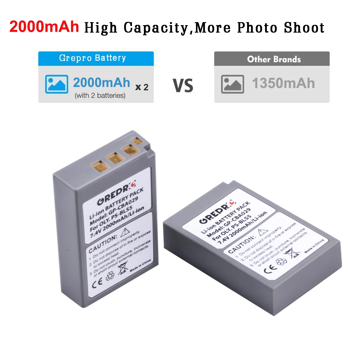 2000 мАч PS-BLS5 аккумулятор камеры + светодиодный двойной зарядное устройство с портом Type-C