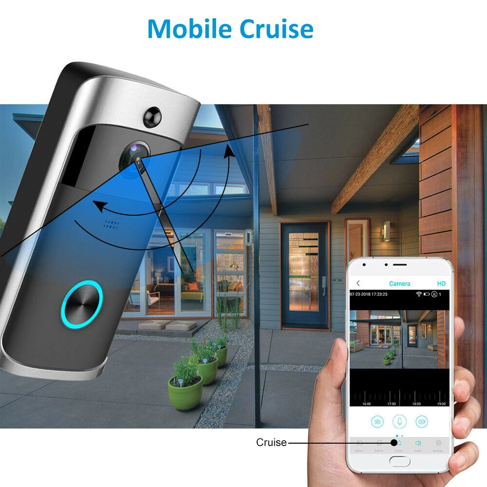 2. Это разрешение HD с разрешением 720p, принятым чипсетом cmos. Вы можете наслаждаться отличным изображением видео full hd и картинкой из этого дверного звонка для домашней безопасности наблюдения. Беспроводная дверная камера дверного звонка для квартиры или заднего двора.