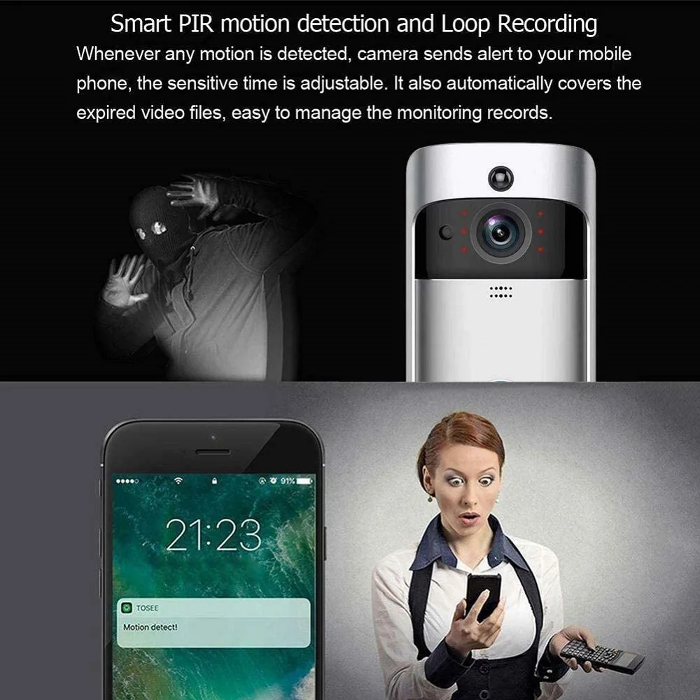 3. Это не только беспроводной дверной звонок для вас, но и ip-камера безопасности для вашего дома. Многофункциональные функции, которые включают в себя беспроводное, двухстороннее аудио, датчик движения, поддерживает как andriod, так и ios систему мобильного телефона.