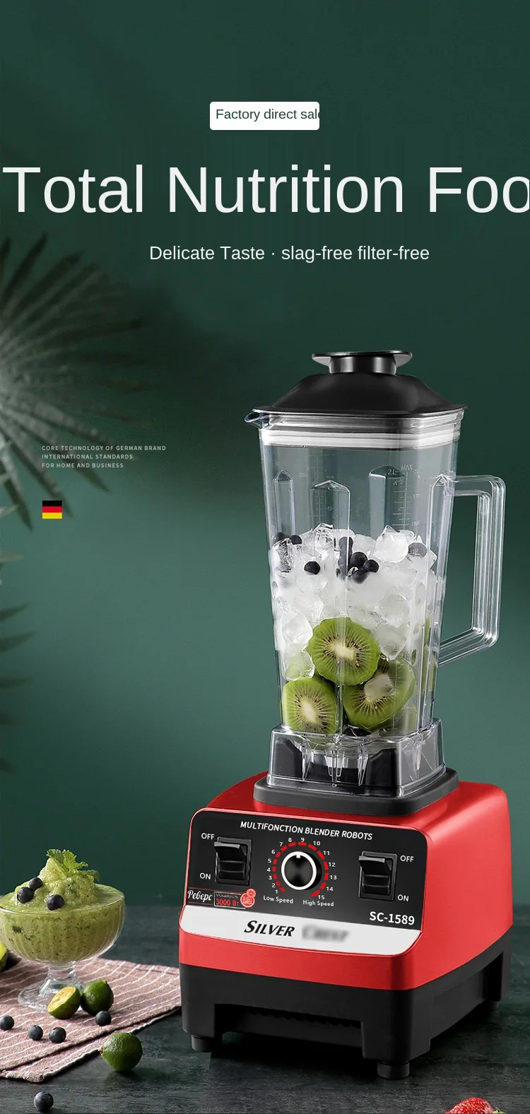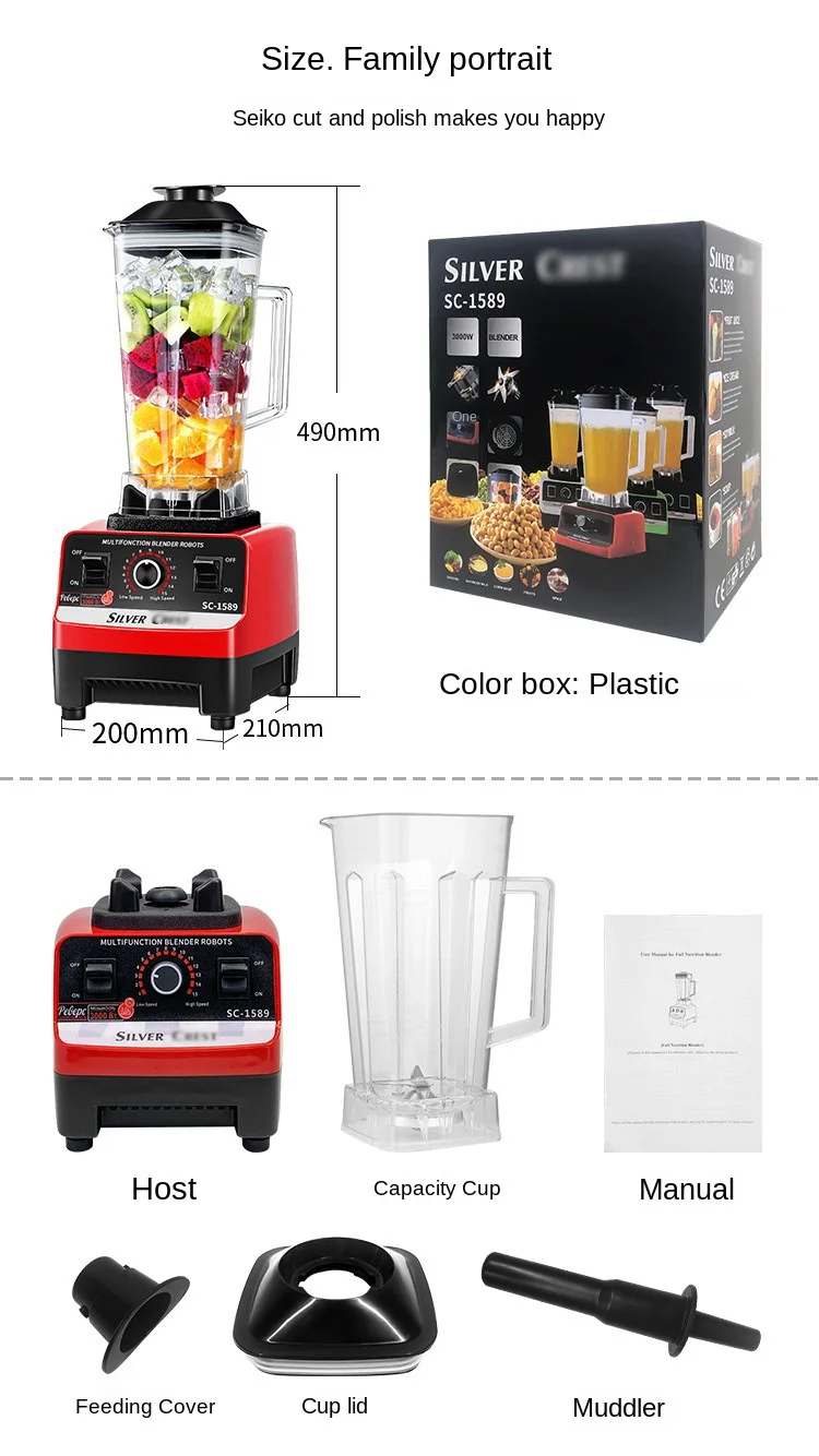 3000 Вт Высокая мощность блендер Коммерческий сорт блендер миксер соковыжималка фруктовый кухонный комбайн лед смузи чайник Регулируемая скорость 2л банка