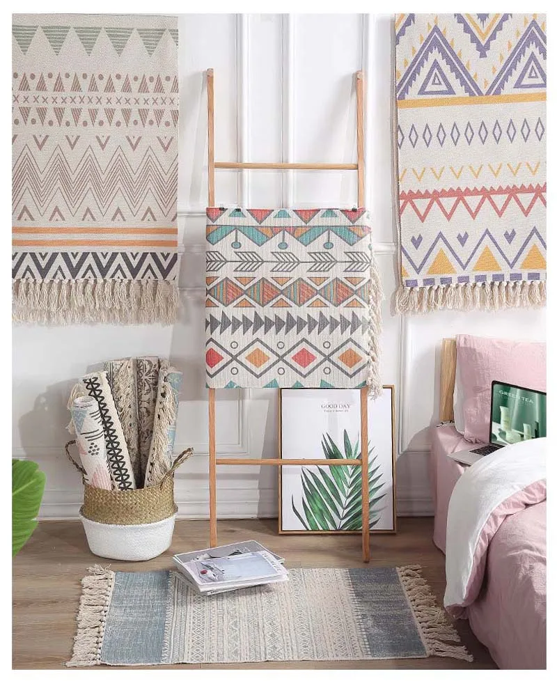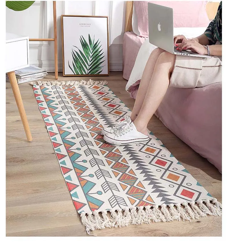 Ручной Тканый ковер для гостиной, спальни, прикроватные коврики, мусульманские коврики для молитв, винтажный бохо, хлопковый льняной коврик для прихожей