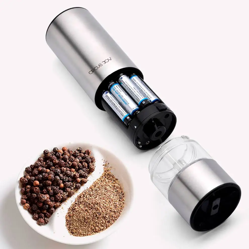 Электрическая мельница для перца и соли Huohou с регулировкой мощности помола. Пять режимов работы. Корпус из матового ABS-пластика. Питание от 6 батареек ААА. Есть светодиодная подсветка. Уровень шума - менее 68 дБ. Особенности: Корпус выполнен из ABS-пластика белого и черного цвета. Матовой поверхности на ней не видны следы от прикосновения рук. Механическая кнопка включения. Регулировка интенсивности помола в 5 режимах. LED-подсветка превращает процесс помола в увлекательное действие. Питание осуществляется от шести батареек ААА, которые не входят в комплект.