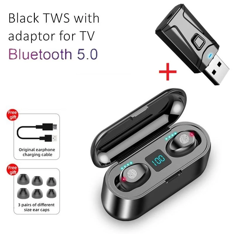 F9-2 беспроводные TWS наушники Bluetooth наушники водонепроницаемые Ture TWS спортивная Гарнитура Bluetooth ТВ адаптер с микрофоном использование для ТВ ПК автомобиля