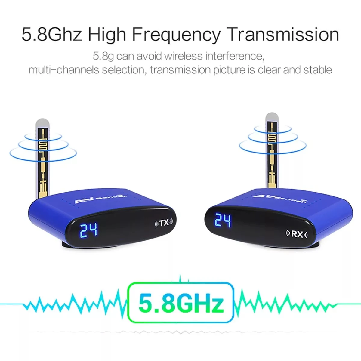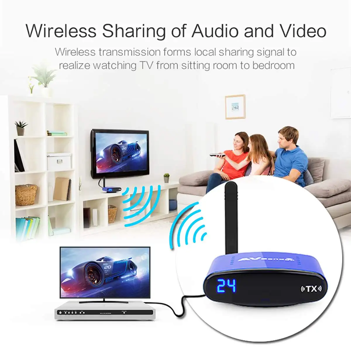 Он состоит из передатчика5,8 ГГцСхемы беспроводной передачи и преимущества дальней передачи, сильной защиты от помех и высокой подвижности. С помощью радиоволн, он может передавать сигнал от dvd-плеера, DVRCCTV камеры, IPTV, спутникового приемника, цифровая ТВ приставка или любые другие AV устройства на конце передатчика к телевизору в разных комнатах в конце приемника. Он может поддерживать пульт дистанционного управления R в конце приемника для реализации функции беспроводного управления устройствами из другого места. Так что вы можете наслаждаться свободным беспроводным HDAV обмен данными и Hi-Fi аудио и видео эффект
