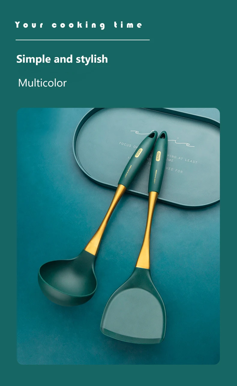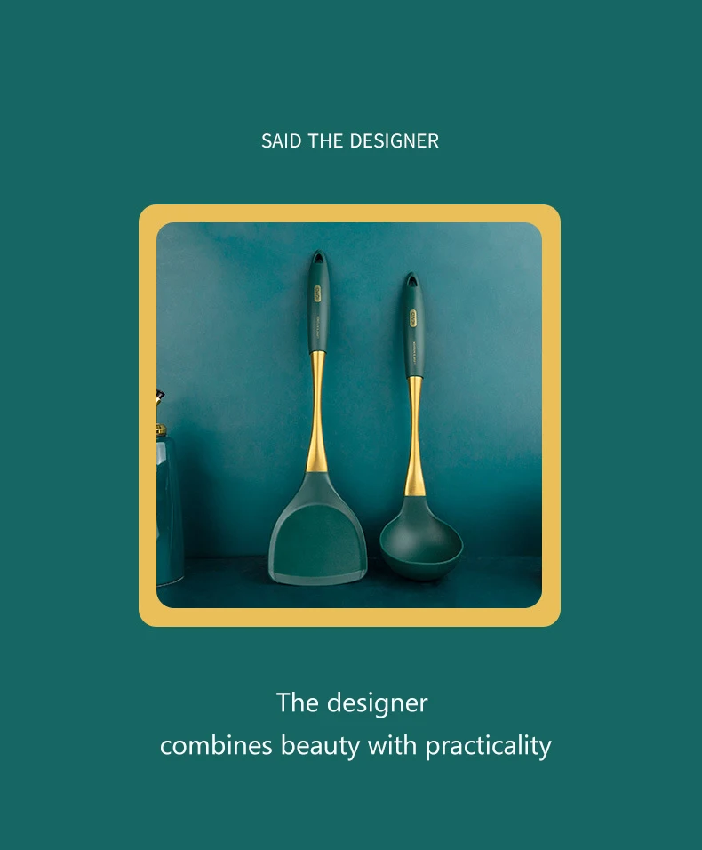 1: Этот продукт представляет собой набор ложек из силиконового шпателя, удобный опыт приготовления пищи, Высококачественная силиконовая ручка из нержавеющей стали