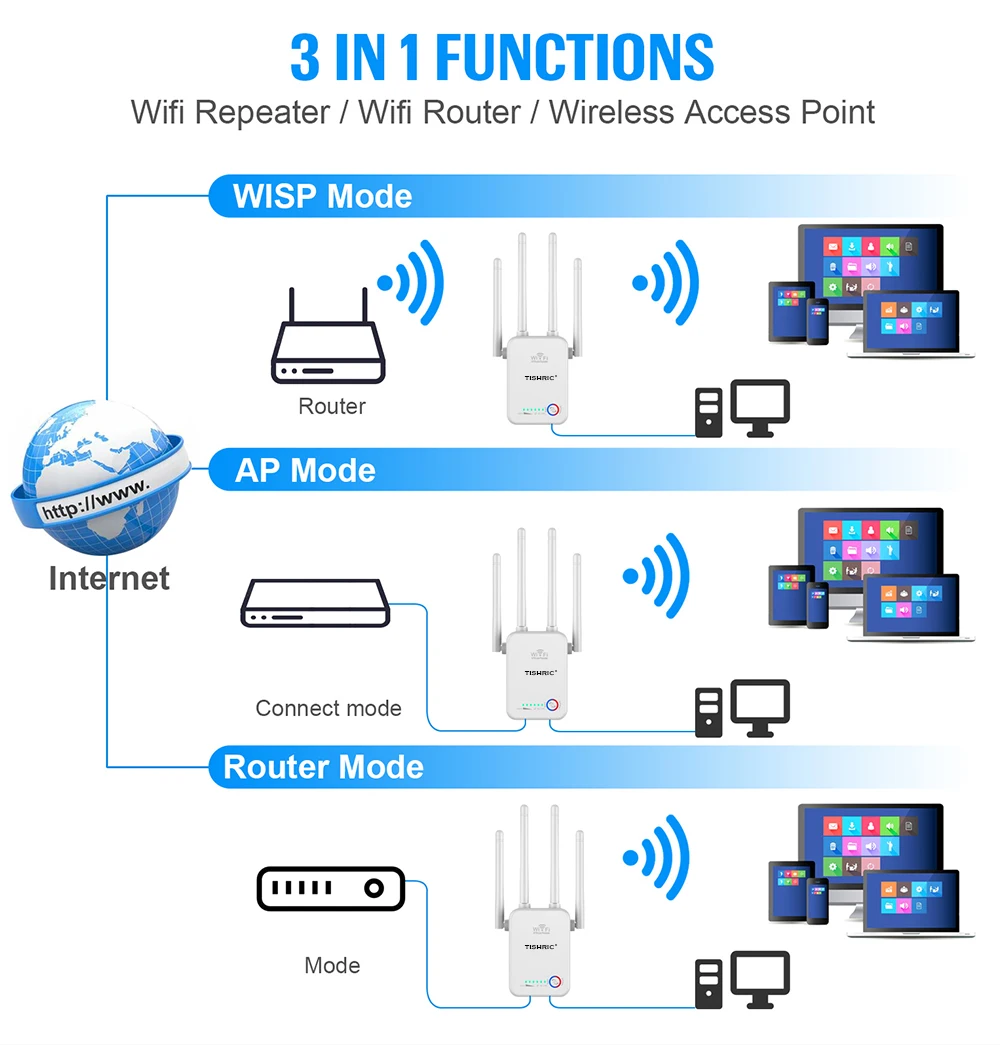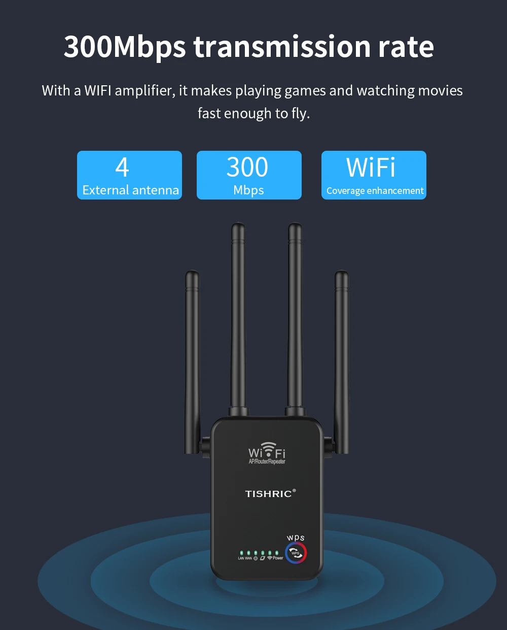 TISHRIC 3 IN 1 300M Long Range Wifi Repeater Wifi Booster Wireless Router 2.4G Wifi Signal Amplifier Wi-fi Extender Router