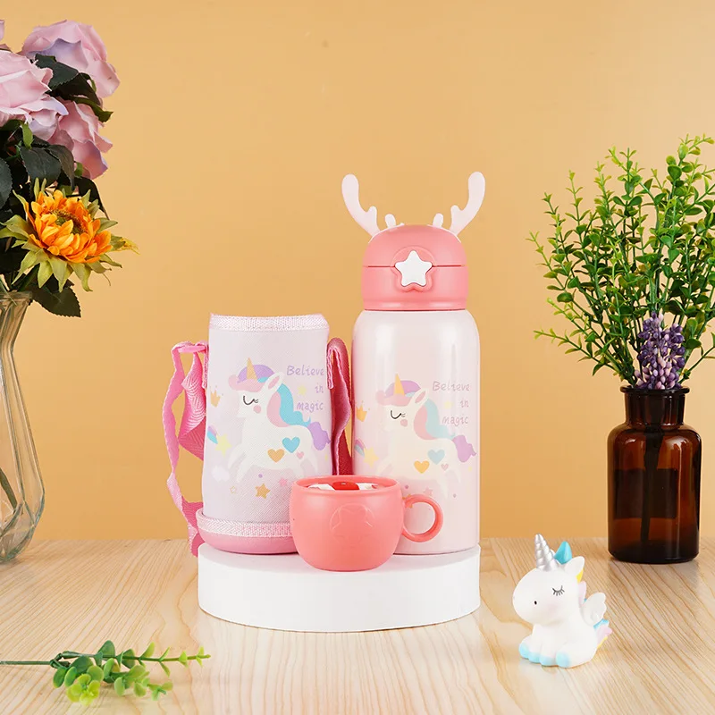 Детская бутылка для воды с рисунком из мультфильма с соломинкой и ремнями
