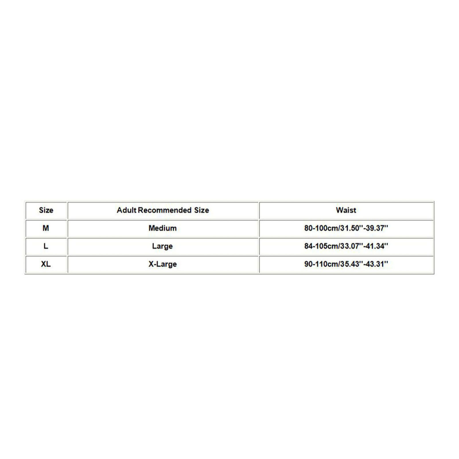 Размеры Рекомендуемый размер для взрослых Талия М Средний 80-100 см/31,50 ''-39,37'' L Большой 84-105 см/33,07 ''-41,34'' XL X-Large 90-110 см/35,43 ''-43,31''