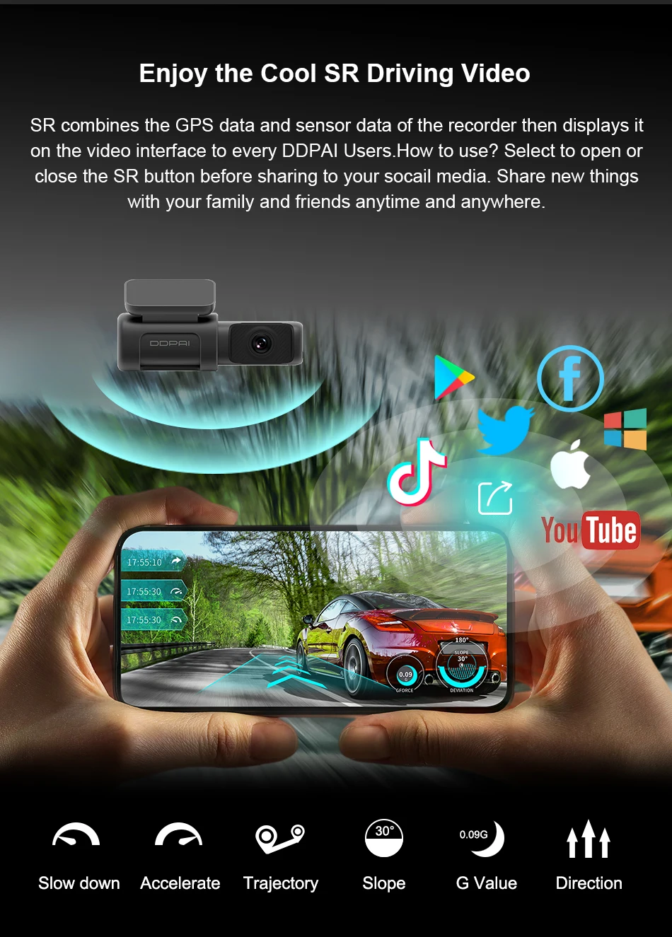 every DDPAI Users How to use ? Select to open or close the SR button before sharing to your socail media .