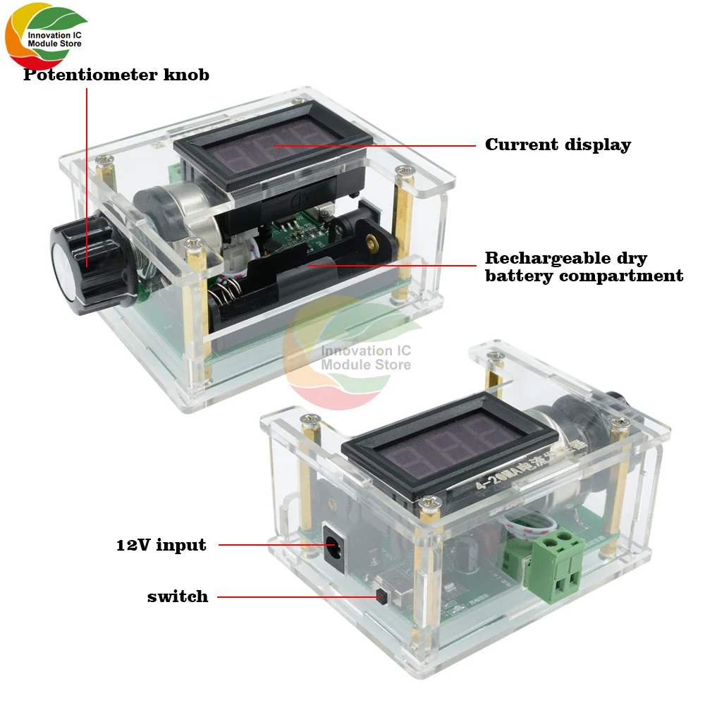 1. Простота в использовании, простая проводка, управление ручкой, регулировка отклика сразу же после выхода, без задержек.2. Диапазон напряжения источника питания: входная мощность 5-28 В постоянного тока, предлагаемый источник питания для 12-24 В постоянного тока.3, защита функциональности: с защитой от обратной полярности входного напряжения, источник питания не работает, не из-за обратного сгорания.4, Стандартный Выходной диапазон тока: вручную регулируя продукт на потенциометре, можно производить 4-20MA выходной ток, для текущего аналогового 4-20MA выход случая.5. Текущее регулирование очень плавное: использование потенциометра с проволочной обмоткой для регулировки тока, плавная регулировка, чтобы избежать общего потенциометра углеродистой пленки, часто производит мутации сопротивления и других сбоев.6, с токоизмерительной головкой, Дисплей Точный.7, с циферблатом, в соответствии с шкалой быстро найти и определить работу оборудования.8, может быть фиксированное значение выходного тока: выходной ток может быть автоматически скорректирован в соответствии с требованиями заказчика в установочной точке, но также делать постоянный ток источника, делать постоянный ток источника, ток на выходе не более 20 мА.9, пропорция золота, легко держать, работа в удовольствие.10. Тестовый выход является нормальным, вы можете использовать мультиметр (ток постоянного тока) коротких "текущий положительный и текущий отрицательный" терминал, сравнить значение дисплея и мультиметр показания одинаковые.11. Продукт используется для: генерации источника сигнала, регулировки клапана, управления инвертором, отладки ПЛК, Тестирования Инструмента, тестирования диода на светильник, выхода аналогового передатчика.4-20MA текущий генератор Выходной импеданс соответствующая проблемаСопротивление выходному сигналу должно соответствовать следующим требованиямВ соответствии с формулой: I = U / R (ток = напряжение, деленное на сопротивление)Таким образом, ваше напряжение питания, разделенное внутренним сопротивлением сигнала, равно вашему приемнику сигнала, может производить максимальный ток.Кроме того, наш генератор тока также имеет определенное внутреннее сопротивление.Так что приходите к такой формуле:Напряжение питания/(сопротивление сигнала клиента + внутреннее сопротивление нашего генератора тока) = Выход постоянного токаПоскольку источник питания нашего модуля составляет 4-35 В напряжения, поэтому, если напряжение питания низкое, и внутреннее сопротивление клиента большое, модуль будет производить постоянный ток не будет достаточно.Вот соответствующие требования к сигналу для нашего модуля:24 В источник питания, сопротивление сигнала не должно быть больше 1000 Ом.12 В источник питания, сопротивление сигнала не должно быть больше 500 Ом.5 в источник питания, сопротивление сигнала не может быть больше 200 Ом.Если сопротивление сигнала превышает вышеуказанные параметры, вы можете улучшить напряжение питания или уменьшить сопротивление сигнала этими двумя способами, чтобы решить проблему с источником постоянного тока. Следует отметить, что напряжение питания не может быть увеличено до более чем 28 в или более.Посылка включает в себя:1 х 4-20мА генератор сигналов тока ручной цифровой аналоговый генератор перезаряжаемый