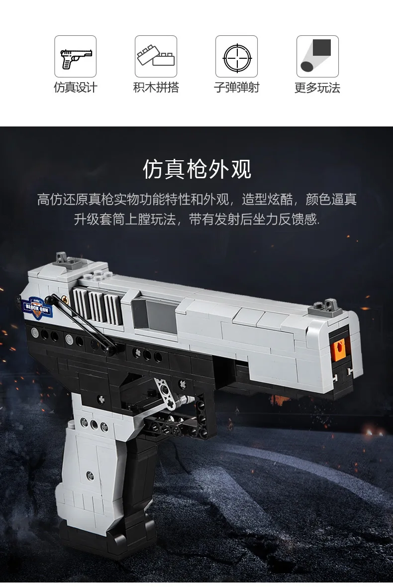 Характеристика: Название продукта: Игрушечный Пистолет Desert Eagle Размер изделия (прибл.): 16*10 см Вес изделия (приблизительно): 90 г Материал изделия: пластик Возраст: >3 года Количество товаров: 1 комплект (43 шт.) Примечание: 1. Будьте осторожны при открытии посылка, чтобы избежать повреждения продукта. 2. Если у вас есть какие-либо вопросы, пожалуйста, свяжитесь с нами вовремя, мы ответим Вам в течение 12 часов (если мы не ответим Вам вовремя из-за региональных различий во времени, пожалуйста, поймите.) Использование и функции продукта: У модельных любителей игрушек должен быть король пистолетов-Игрушечный Пистолет desert eagle, обязательные модели для боевых игр.