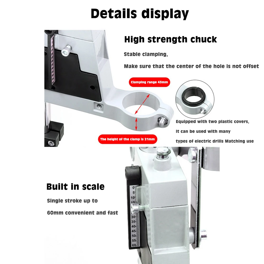 Высокопрочный патрон: Стабильный зажим, чтобы убедиться, что Центр отверстия не отклоняется, широкий патрон 38-43 мм, подходит для всех видов электрических сверл (без батарей)