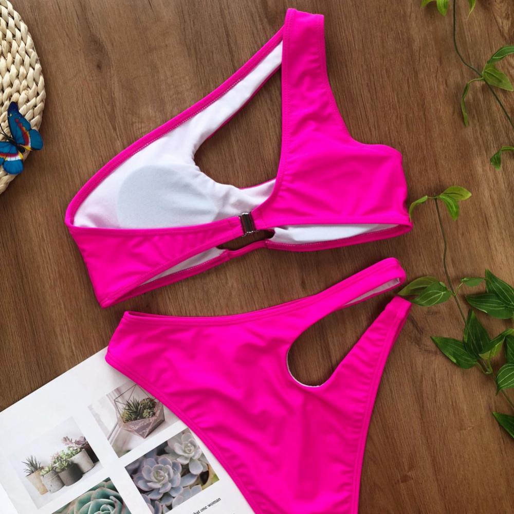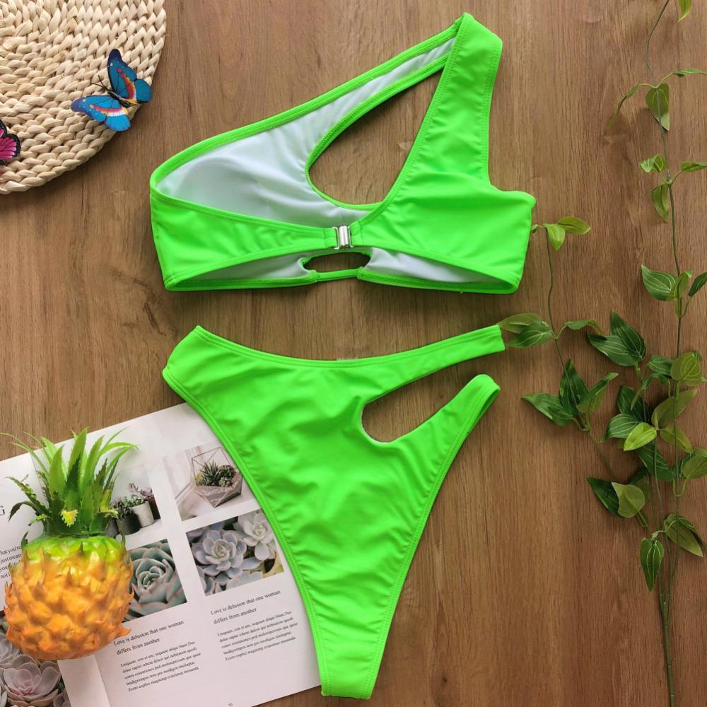 Женский однотонный комплект бикини с подкладкой на одно плечо, бюстгальтер с вырезами, трусы, купальник