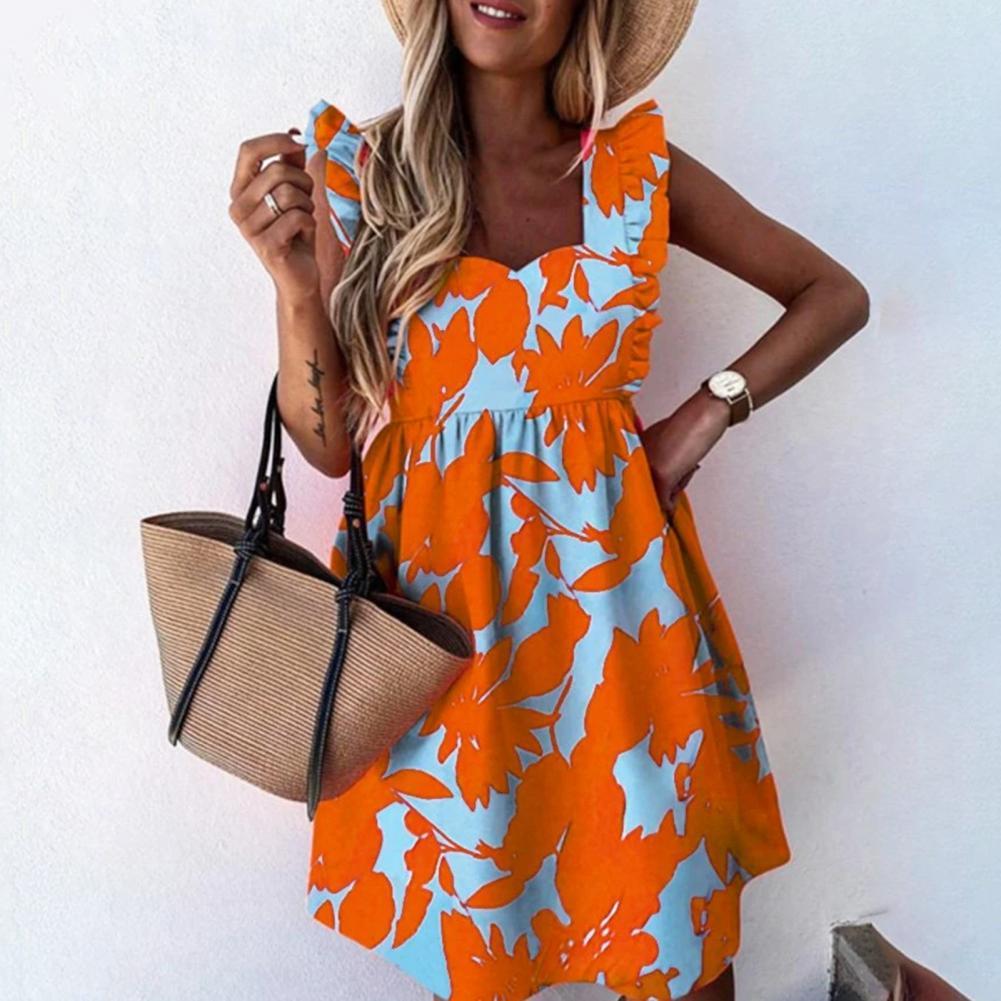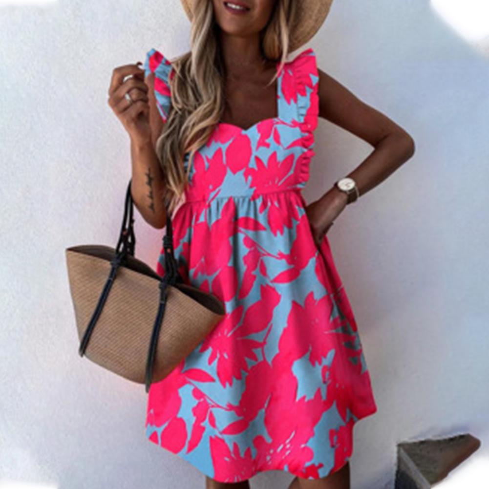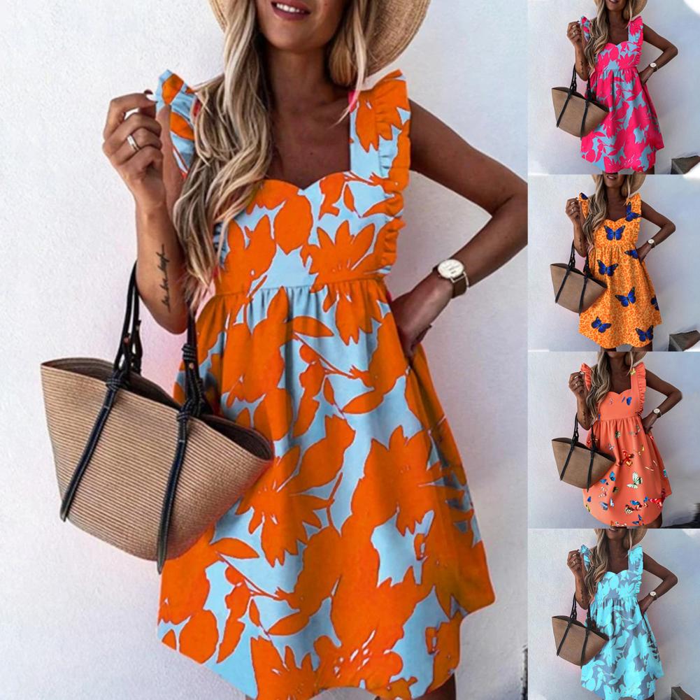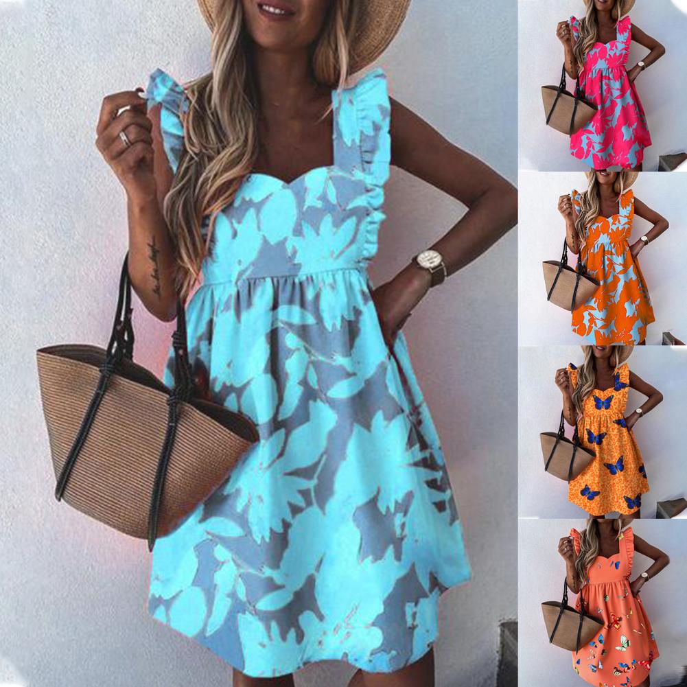 Женское платье с леопардовыми бабочками и оборками, летнее платье без рукавов с квадратным вырезом и большим подолом, вечерние платья
