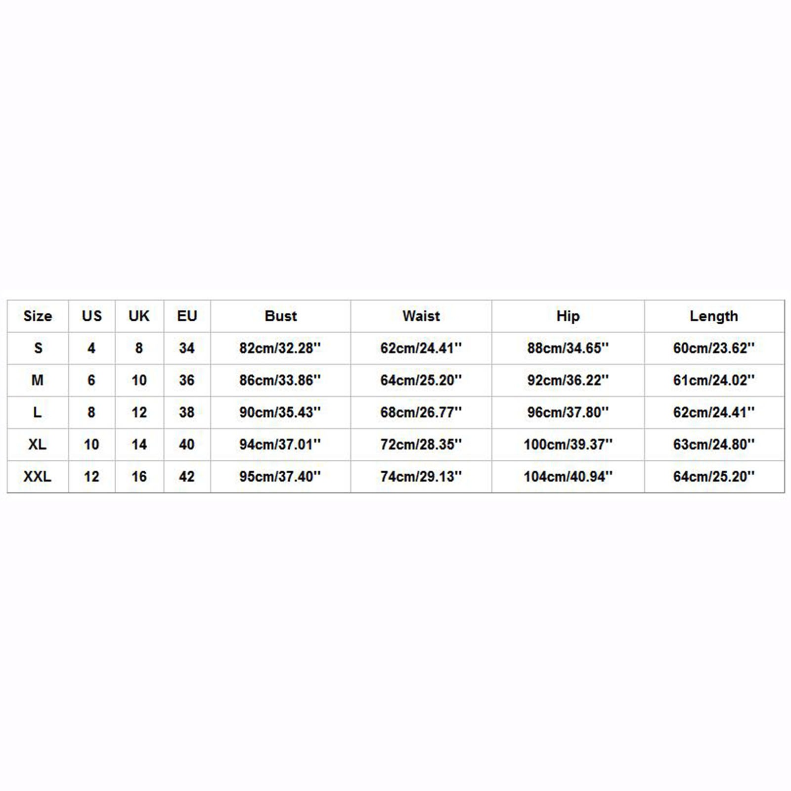 Размеры США Великобритания ЕС Бюст Талия Бедра Длина S 4. 8 34 82 см/32,28'' 62 см/24,41'' 88 см/34,65'' 60 см/23,62'' М 6 10 36 86 см/33,86'' 64 см/25,20'' 92 см/36,22'' 61 см/24,02'' L 8 12 38 90 см/35,43'' 68 см/26,77'' 96 см/37,80'' 62 см/24,41'' XL 10 14 40 94 см/37,01'' 72 см/28,35'' 100 см/39,37'' 63 см/24,80'' XXL 12 16 42 95 см/37,40'' 74 см/29,13'' 104 см/40,94'' 64 см/25,20''