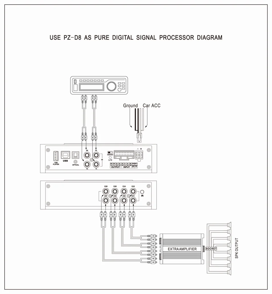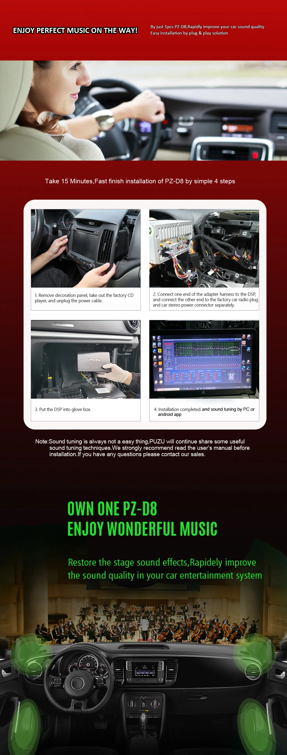 PUZU PZ-D8 D Класс 8 каналов автомобильный аудио DSP усилитель процессор с 4X220W выходная мощность цифровой сигнал процессор аудио система