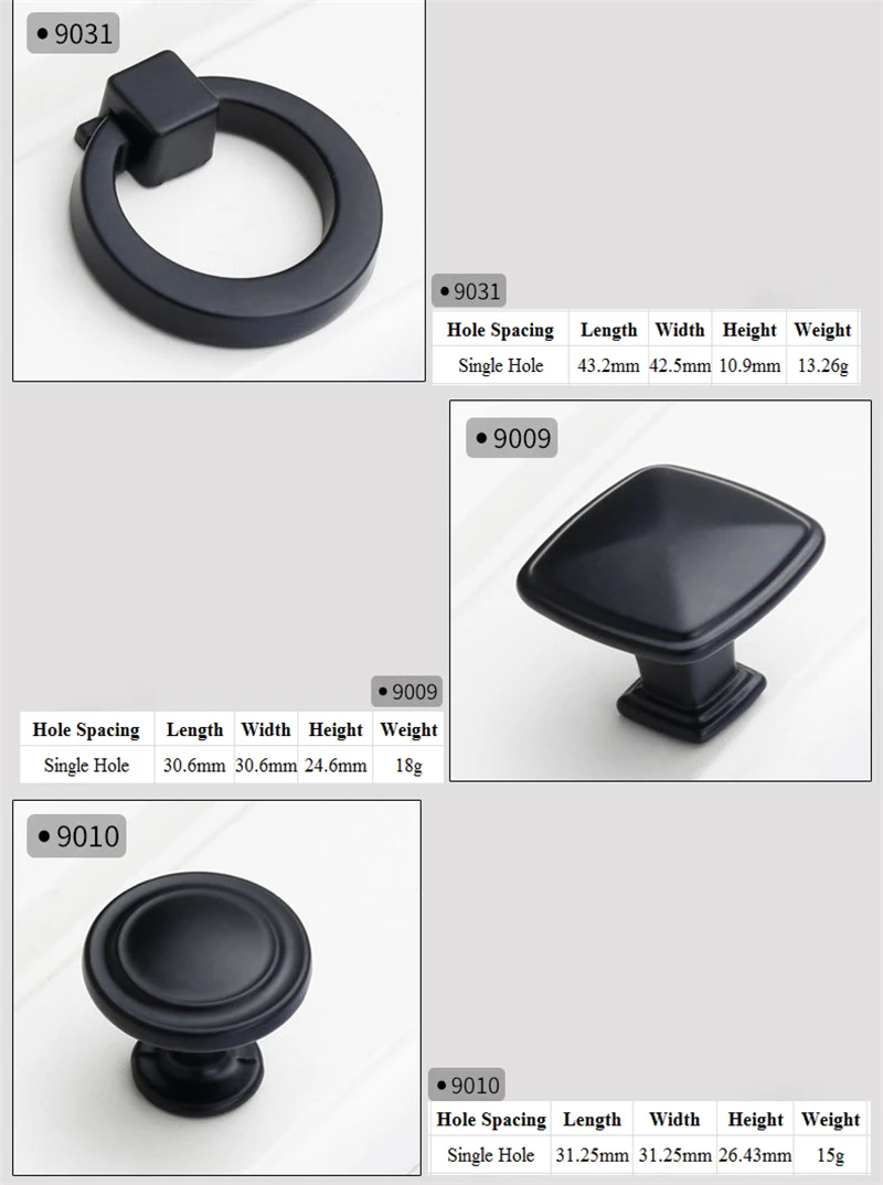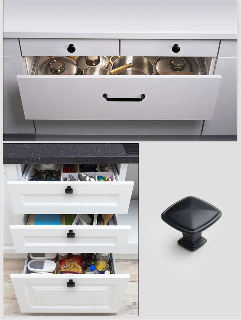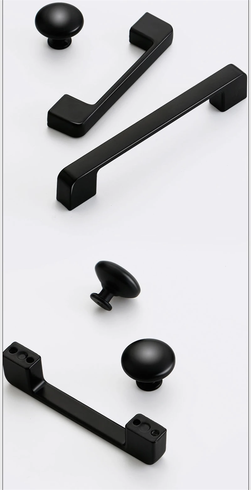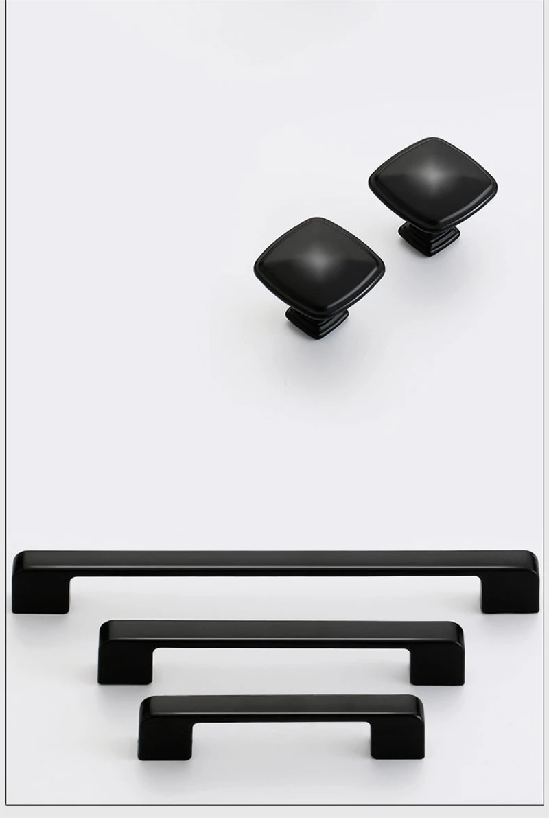 American Style Black Cabinet Handles Solid Aluminum Alloy Kitchen Cupboard Pulls Drawer Knobs Furniture Handle Hardware